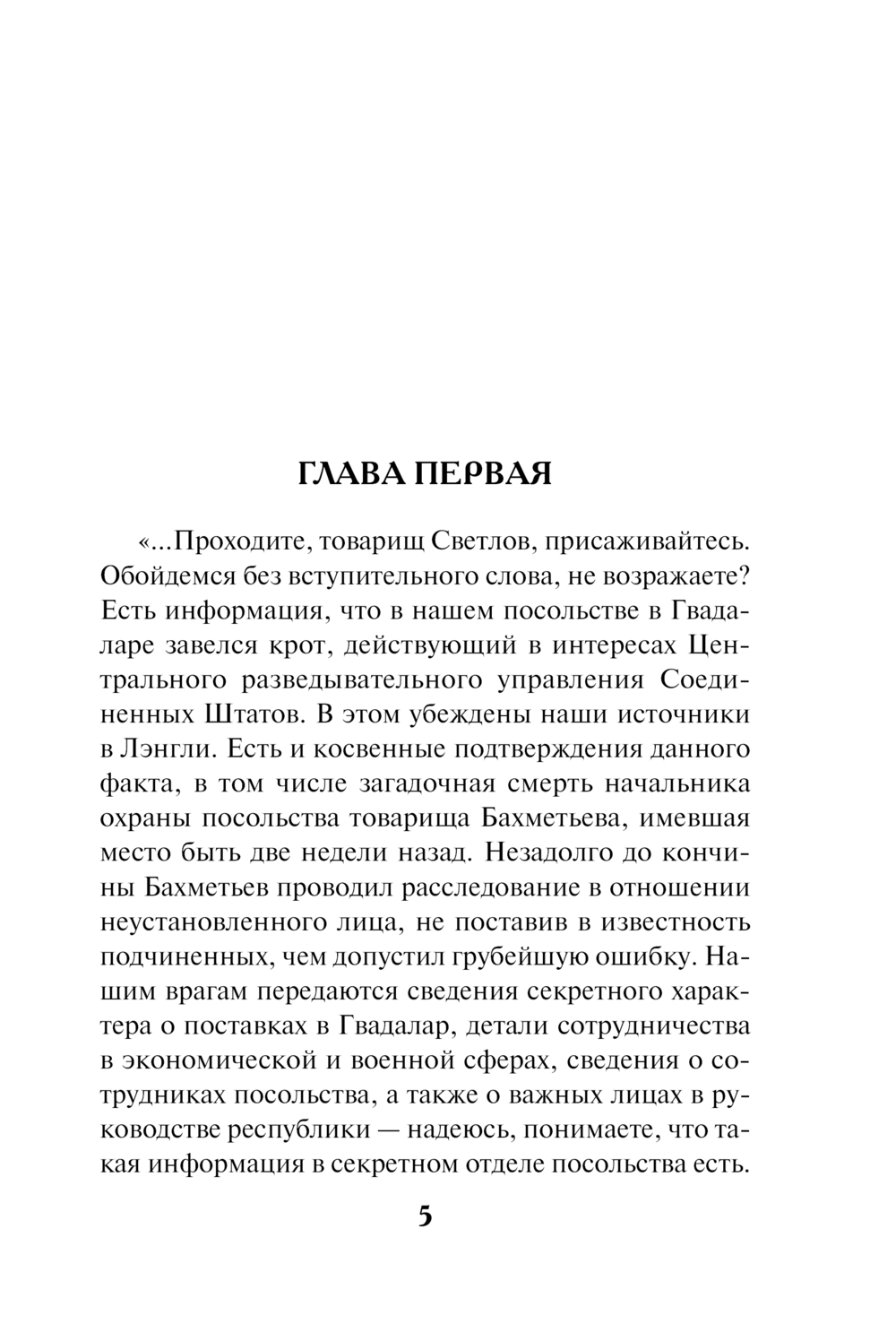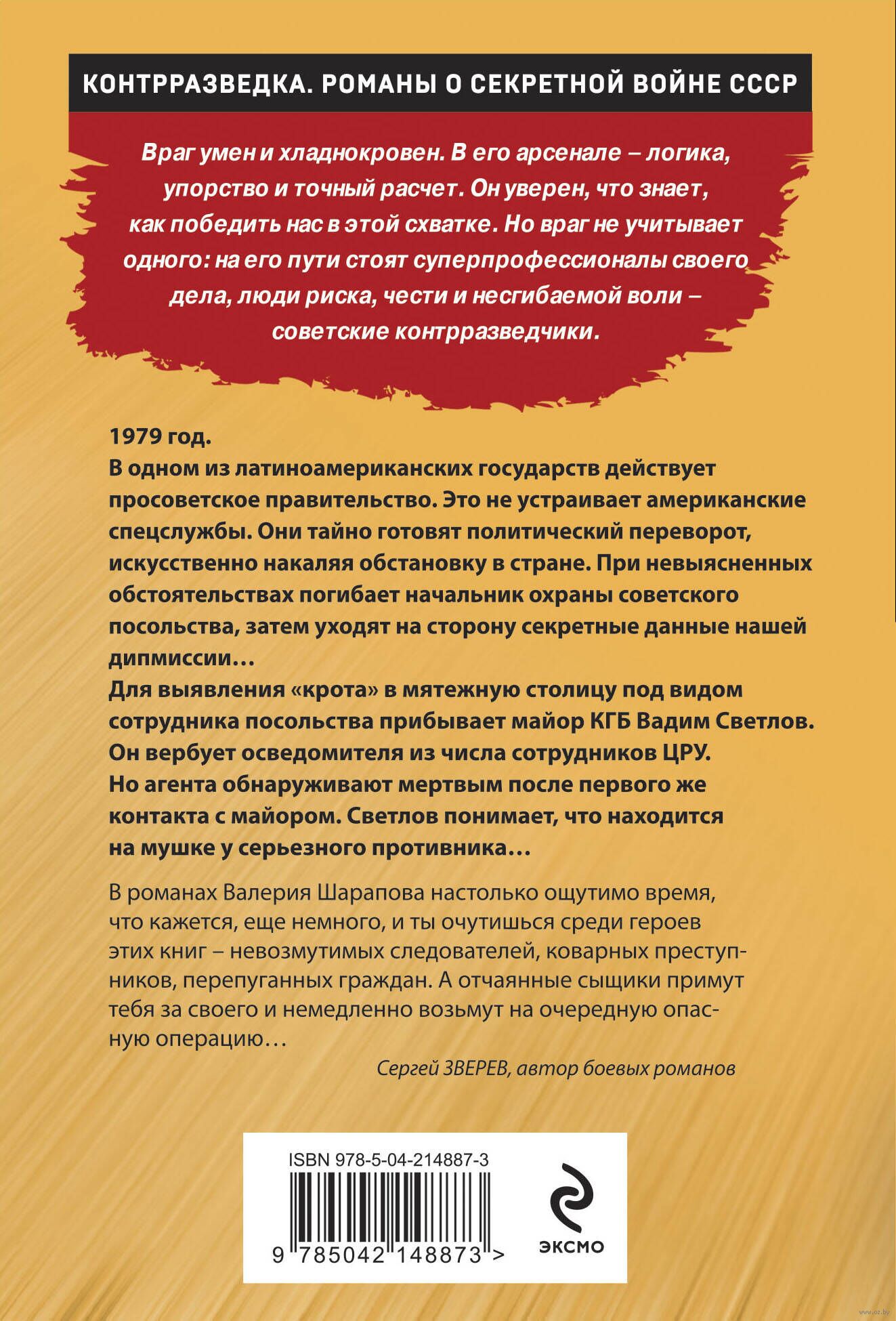 1979 год. В одном из латиноамериканских государств действует просоветское правительство. Это не устраивает американские спецслужбы. Они тайно готовят политический переворот, искусственно накаляя обстановку в стране. При невыясненных обстоятельствах погибает начальник охраны советского посольства, затем уходят на сторону секретные данные нашей дипмиссии... Для выявления "крота" в мятежную столицу под видом сотрудника посольства прибывает майор КГБ Вадим Светлов. Он вербует осведомителя из числа сотрудников ЦРУ. Но агента обнаруживают мертвым после первого же контакта с майором. Светлов понимает, что находится на мушке у серьезного противника...