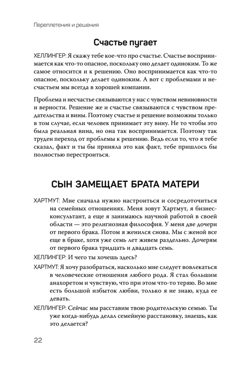 В книге описываются и объясняются основные способы терапевтических действий, касающиеся в первую очередь семейной расстановки – метода, позволяющего обнаружить переплетения и найти решение для клиента.