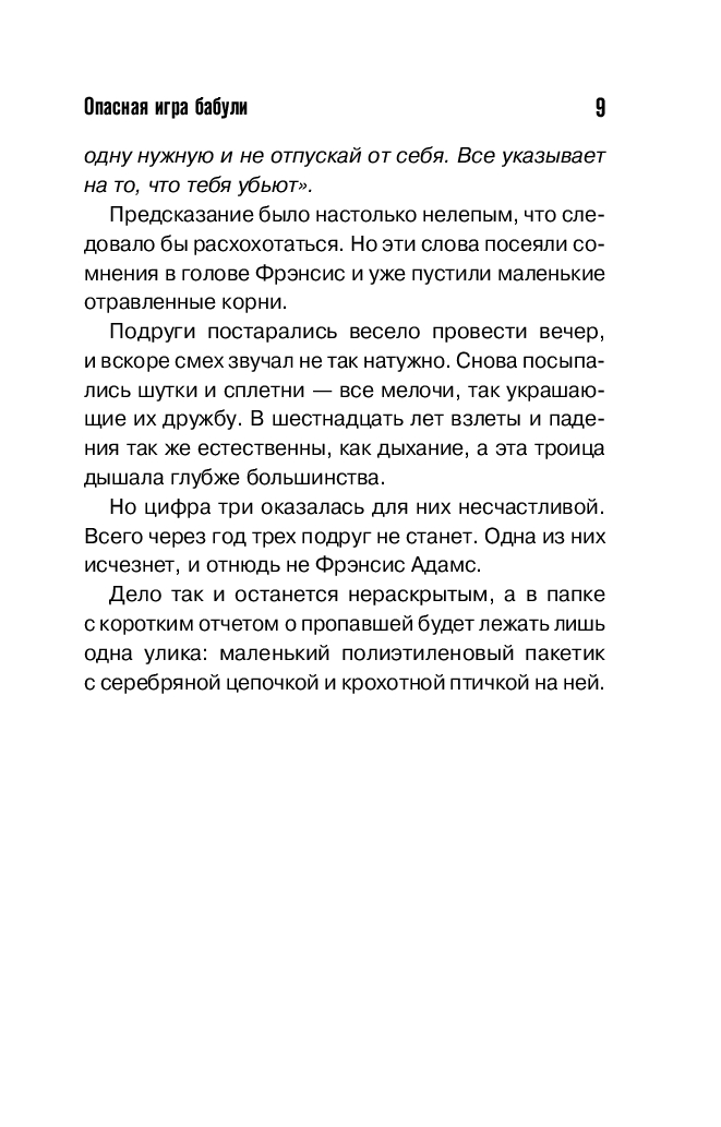 Старая добрая Англия, 1965 год. Ярмарочная гадалка предсказывает шестнадцатилетней Фрэнсис Адамс ужасающее будущее: однажды девушку убьют... С тех пор всю свою жизнь та посвящает расследованию убийства, которое еще не произошло. Никто не принимал опасения Фрэнсис всерьез, пока, шестьдесят лет спустя, ее труп не находят в библиотеке.