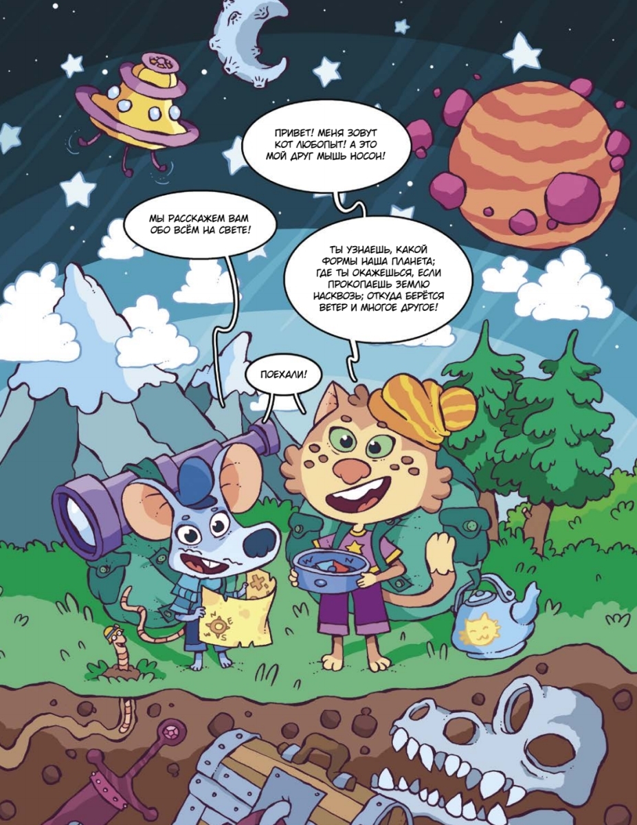 Эта книга – увлекательное путешествие в мир знаний, где любознательный кот Любопыт и его друг мышь Носон рассказывают о самых интересных явлениях природы, космоса и нашей планеты.