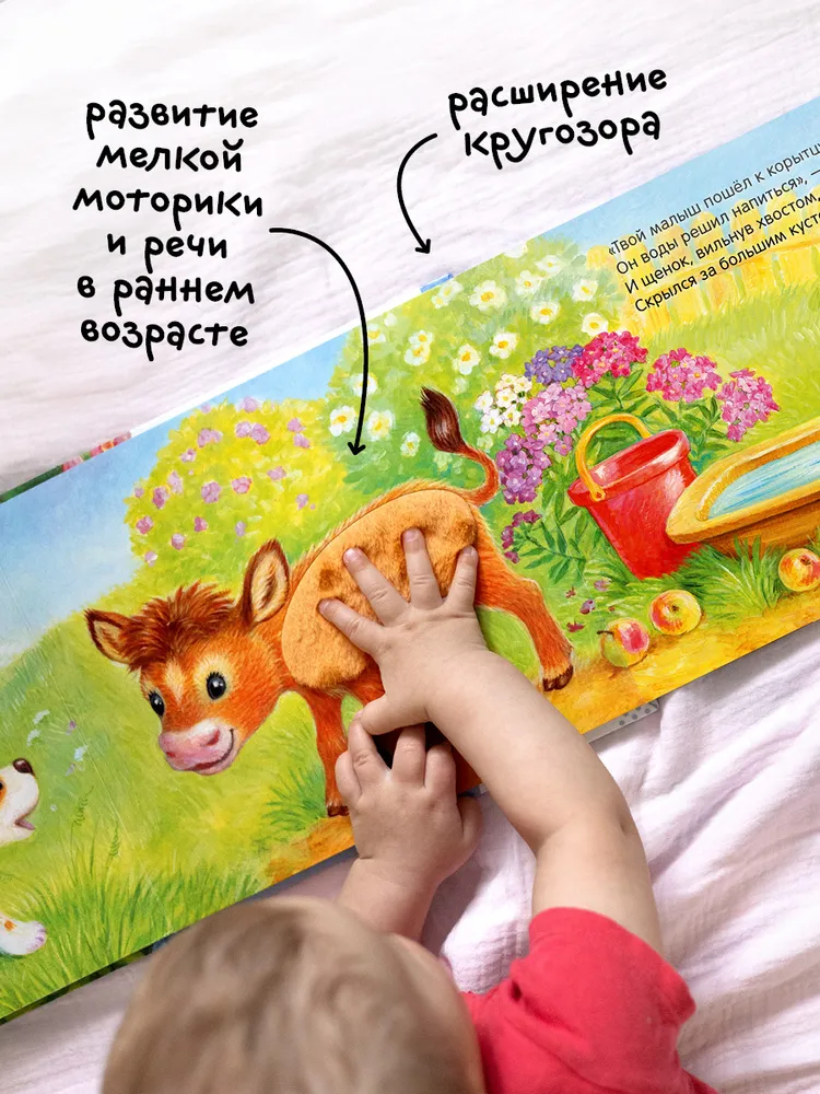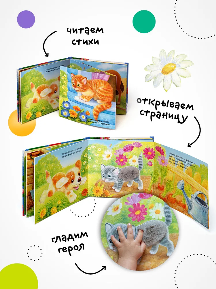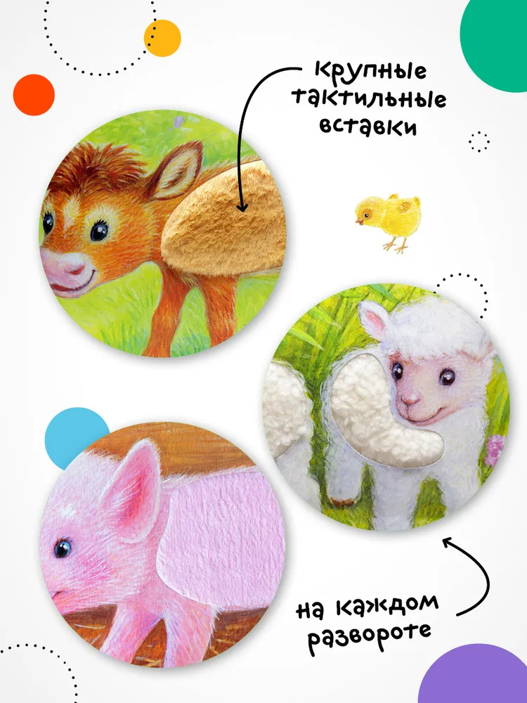Крупные тактильные вставки на обложке и страницах книги позволяют погладить обаятельных героев и почувствовать, какие они мягкие и приятные на ощупь!