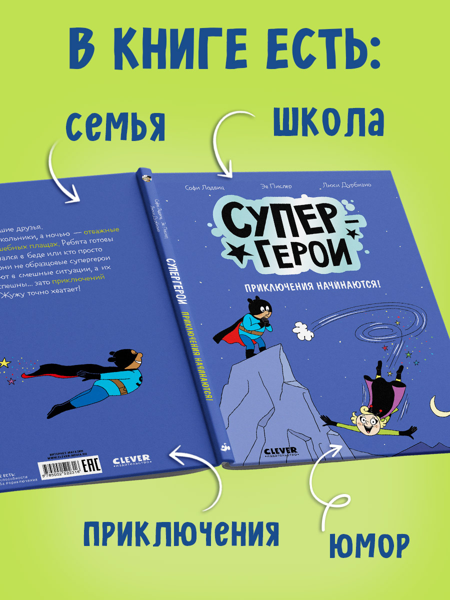 "Супергерои. Приключения начинаются!" – комикс для школьников и про школьников. Понравится тем, кто только начинает читать сам, кто любит картинки и короткие тексты, кто обожает юмор, приключения и верит в волшебство.