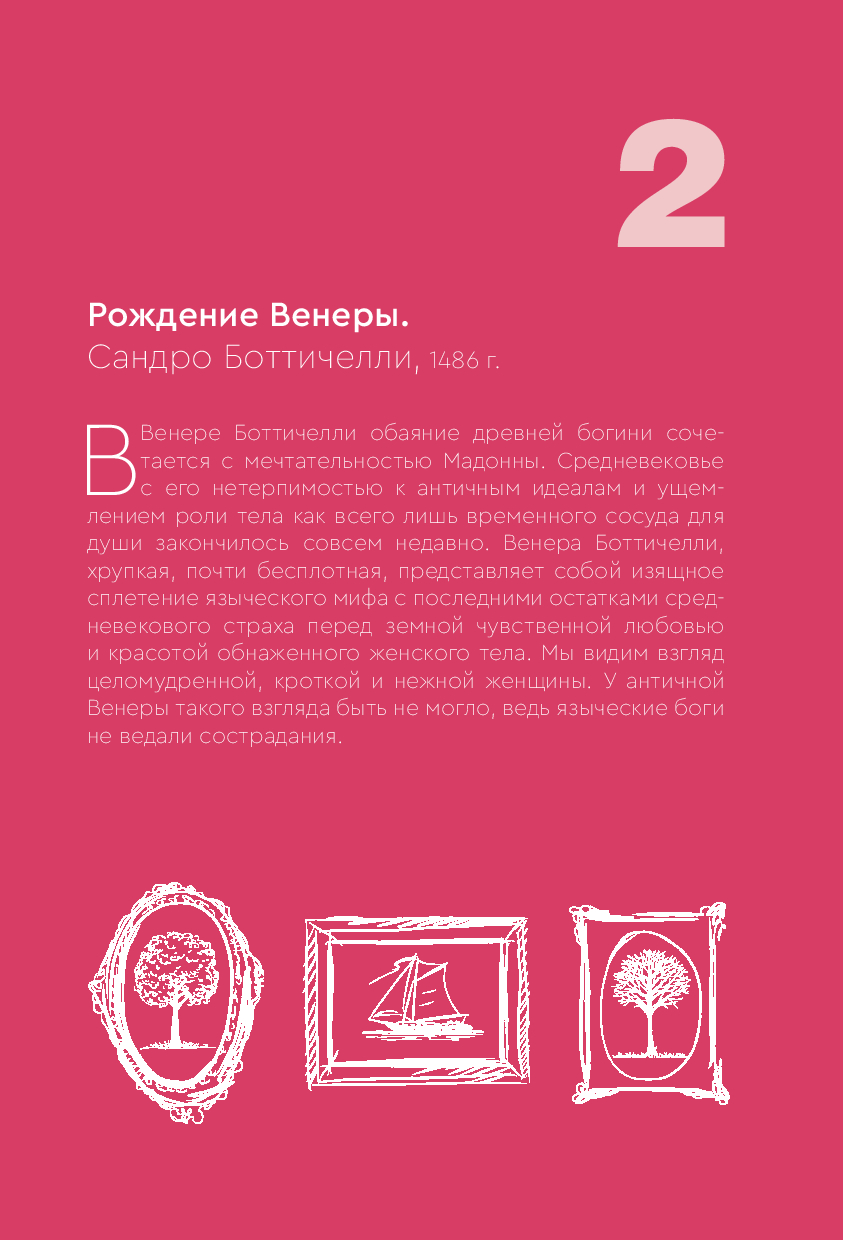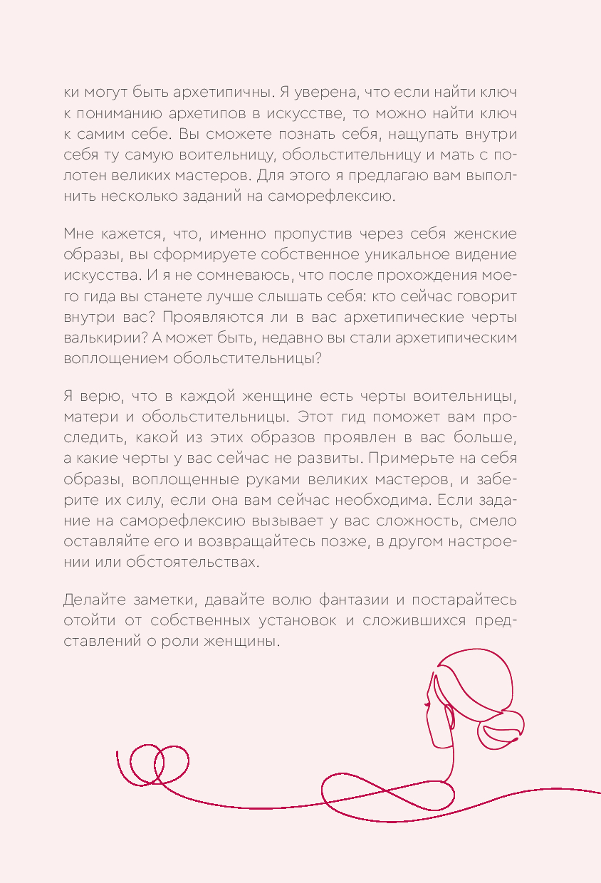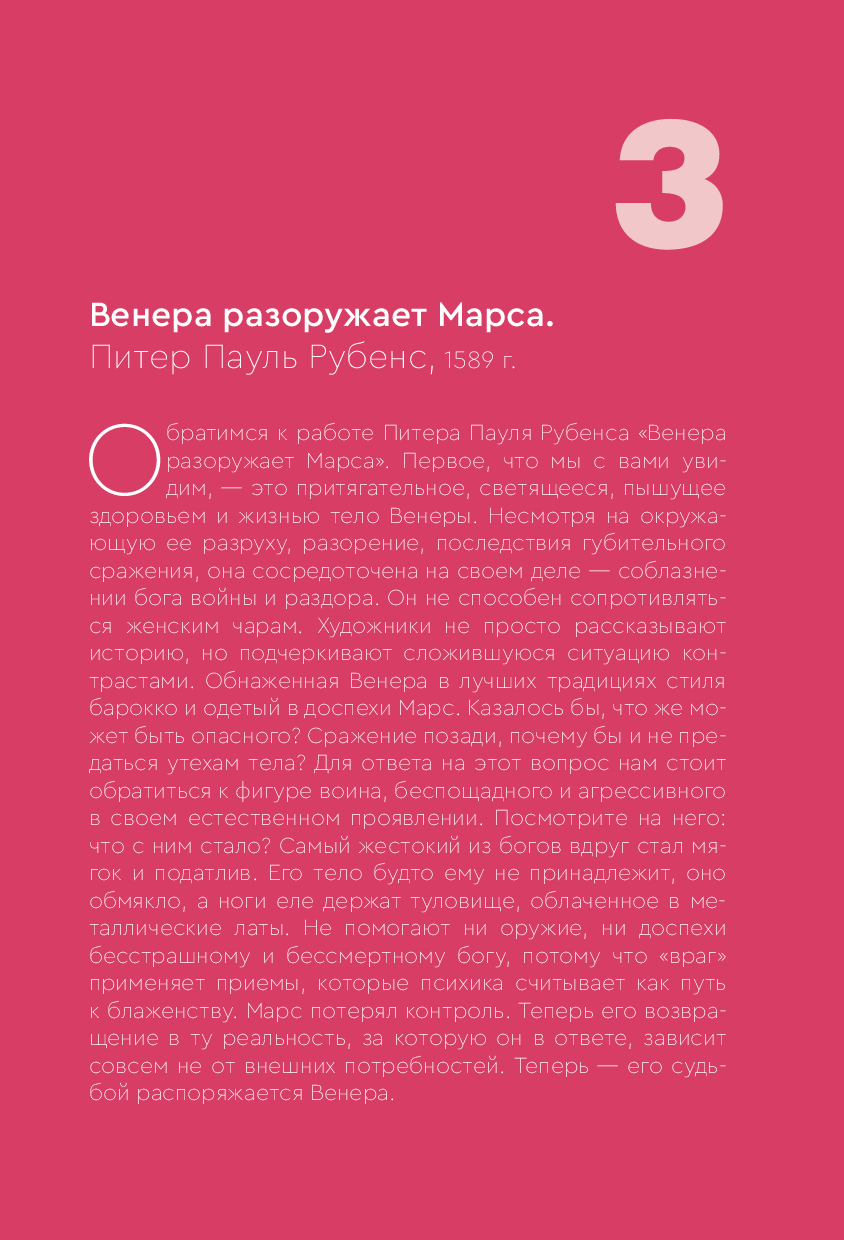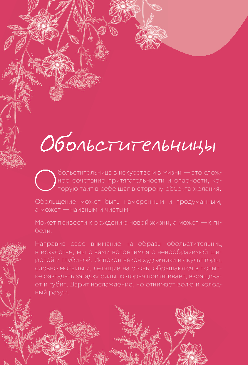 В нем вы разберете три основных архетипа в живописи: обольстительниц, воительниц и матерей. С помощью наводящих вопросов и описаний вы узнаете не только о смыслах картин, но и о себе, о ваших подругах, сестрах и матерях.