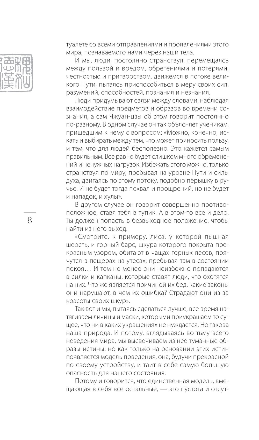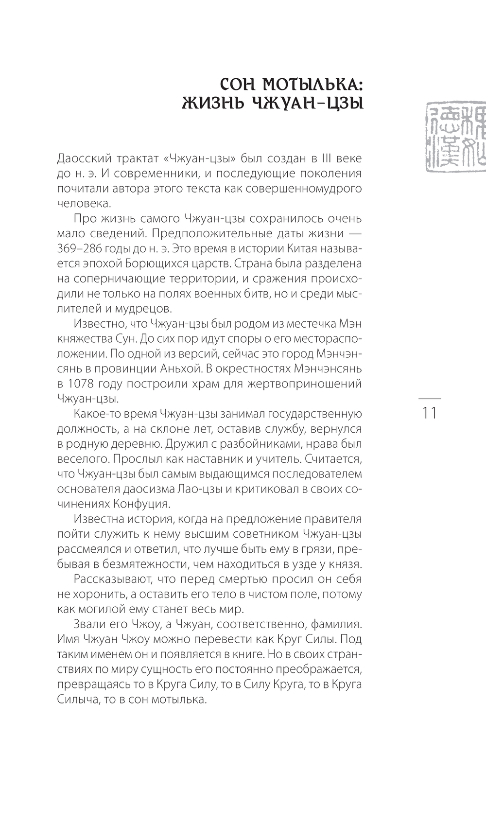 Чжуан-цзы – знаменитый философ-даос и автор притч, занимающий в пантеоне китайской культуры место соизмеримое с Конфуцием и Лао-цзы и, в то же время, особенное, поскольку его произведения доступны для понимания читателю с любым уровнем подготовки и непосредственно: как текст и образный ряд.