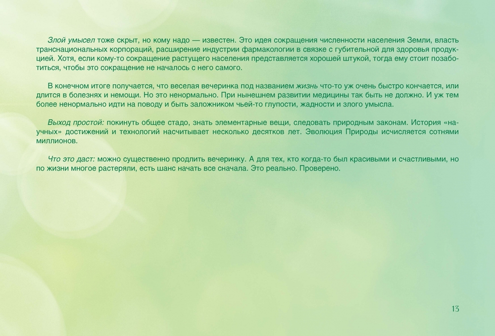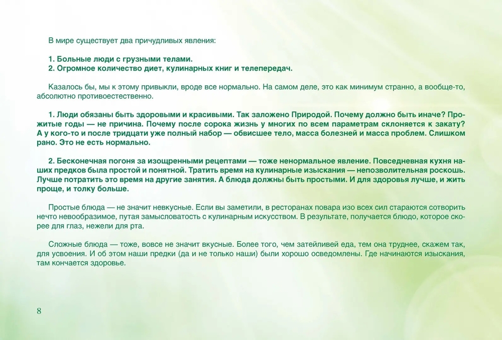 Человечество накопило как множество полезных и разумных традиций в питании, так и множество заблуждений. Мы будем выбирать только все самое лучшее и мудрое. В книге представлен компромисс между живым питанием (сыроедением) и традиционной кухней. Все делается просто, быстро, вкусно. Для красоты, здоровья, силы.