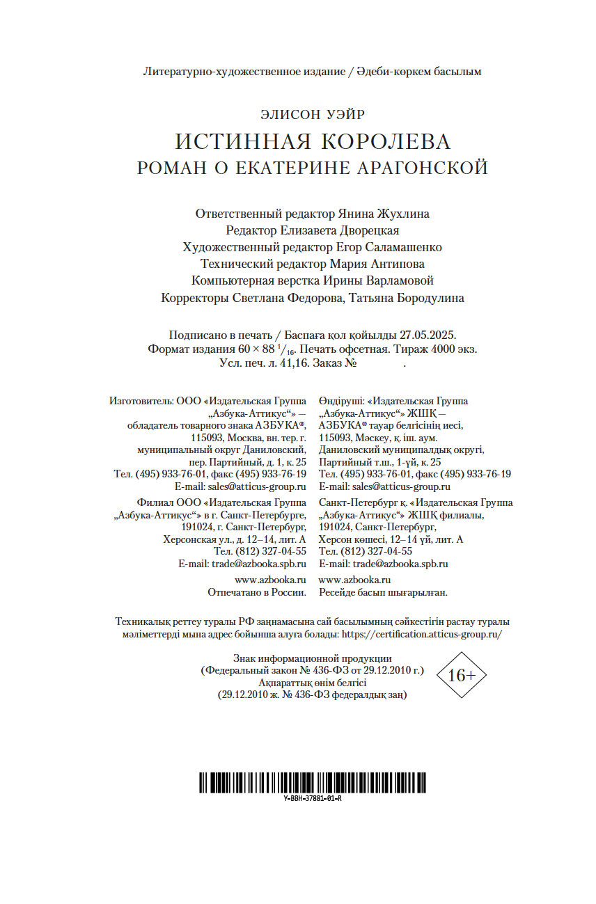 "Истинная королева. Роман о Екатерине Арагонской" – это первая книга из драматической серии о шести женах короля Генриха VIII, созданной популярным автором и известным историком Элисон Уэйр.