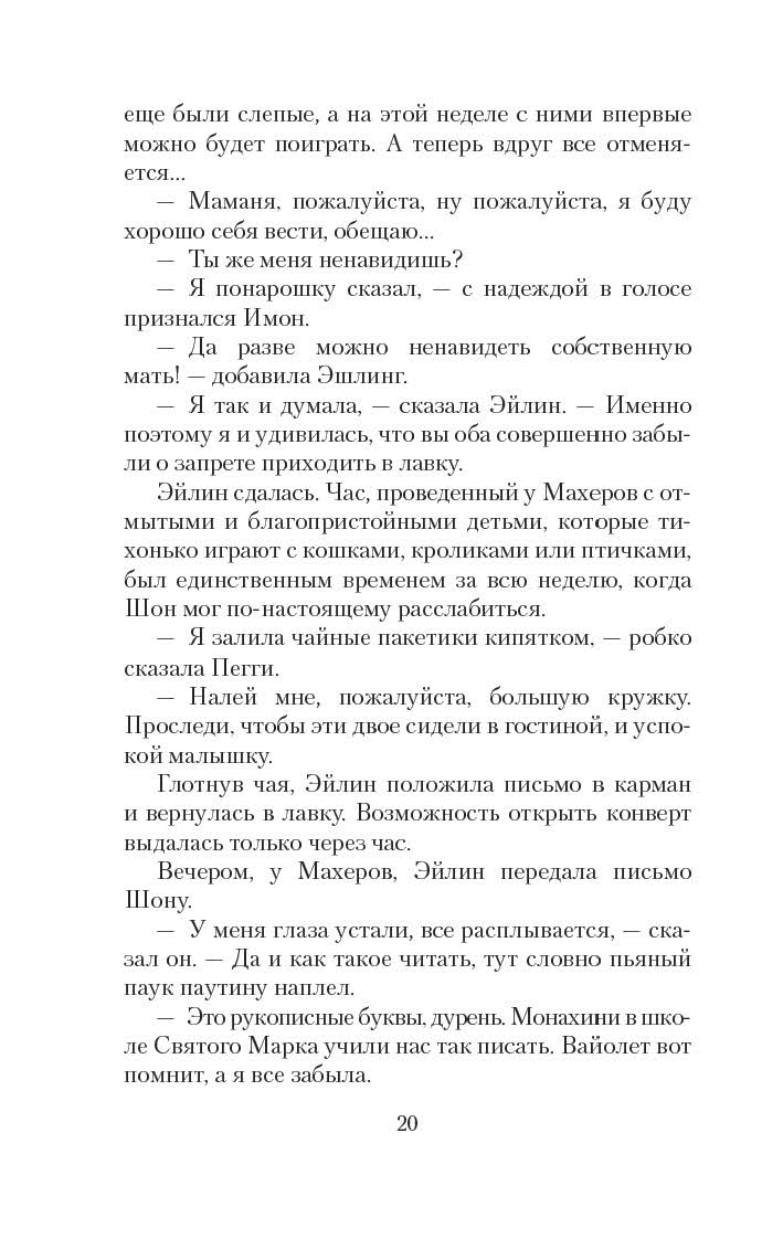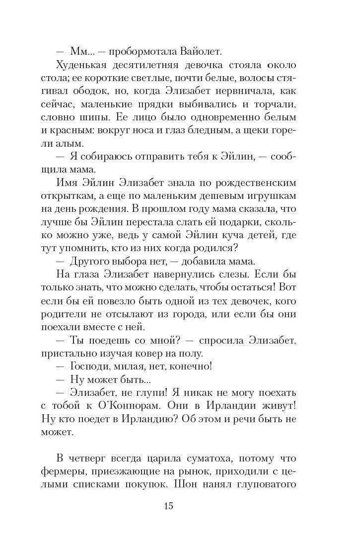 Элизабет было всего десять лет, когда ей пришлось покинуть родной дом. В Европе шла война, Лондон бомбили, и родители решили отправить дочь в более безопасное место – в далекий ирландский городок. Девочку приютила большая, многодетная, суматошная семья, и жизнь Элизабет совершенно изменилась. Но самое главное – у нее появилась близкая подруга Эшлинг. Они сумели сохранить дружбу на долгие годы, веря, что их отношения выдержат любые трудности и испытания...