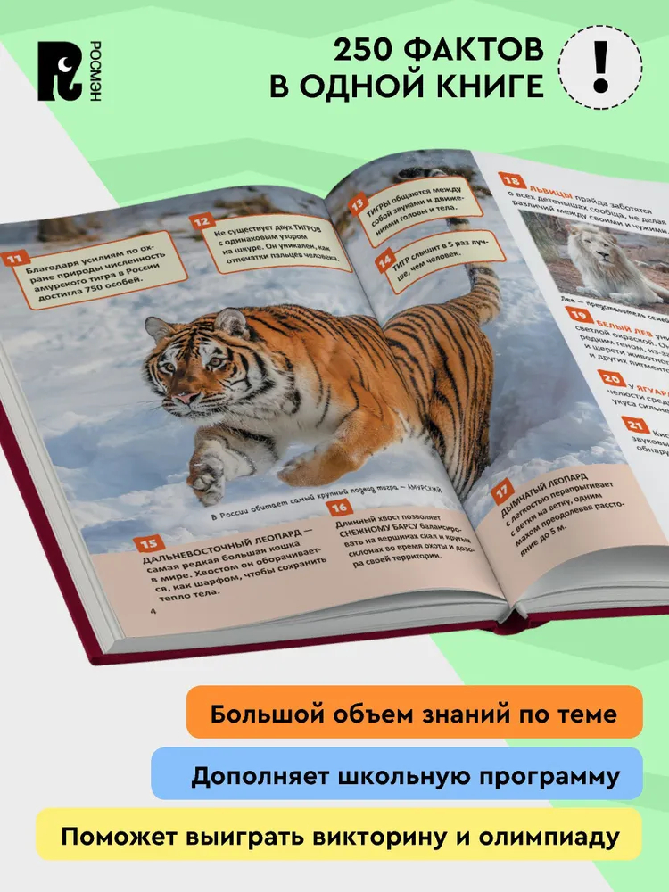 На страницах книги вас ждут 250 невероятных фактов из жизни редких и вымирающих животных нашей планеты! Вы узнаете, почему с лица земли исчезли птица дронт и стеллерова корова, кто является официальным символом Московского зоопарка, зачем калан обматывается водорослями, какая птица вдохновила людей на создание венецианских карнавальных масок, кто повлиял на изобретение поезда-пули "Синкансэн", и получите много других сведений.