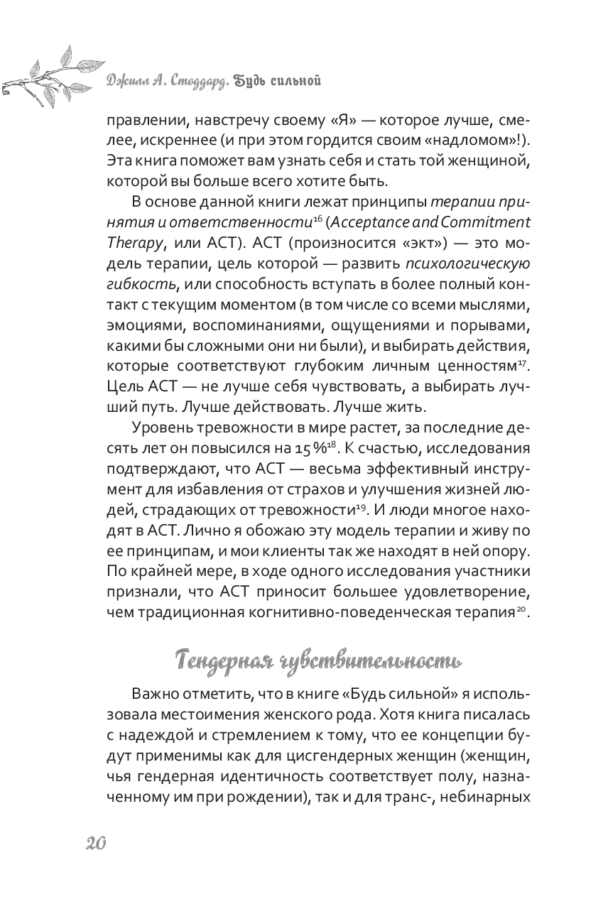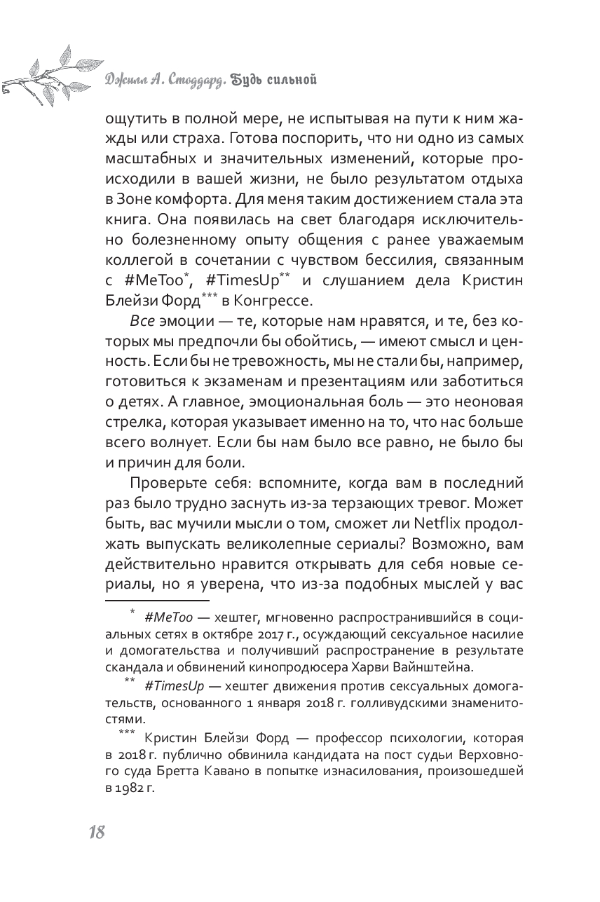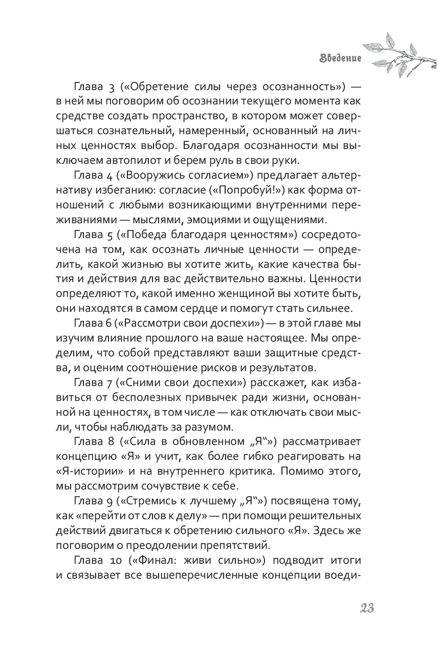Быть сильной – это не значит во всем быть совершенной и ничего не бояться. Это значит жить полной и осмысленной жизнью, несмотря на боль, ошибки и стресс, которые ее сопровождают. Пытаясь избежать неприятных чувств, мы делаем себя заложниками нереалистичных идеалов. Когда вы сможете встретить тревогу и страхи лицом к лицу, они больше не будут мешать вам достигать своих целей и двигаться к той жизни, к которой вы стремитесь.