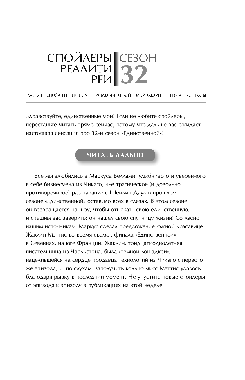 Жаклин Мэттис недовольна тем, как развивается ее писательская карьера, и хочет подтолкнуть продажи своих книг, приняв участие в популярном реалити-шоу "Единственная". Жаклин знает, какую роль ей нужно сыграть, чтобы добиться успеха, ведь романтические истории – ее конек.