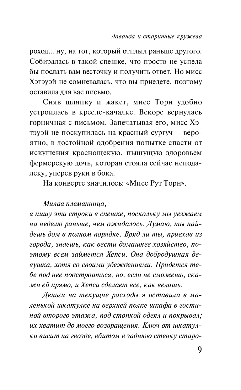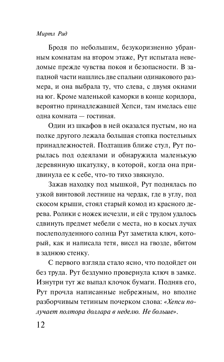 Между Рут и Карлом постепенно зарождаются чувства, и вскоре они планируют совместное будущее. Однако возвращение тети с новым мужем меняет привычный ход событий, и Рут на время переезжает к мисс Эйнсли. Так проходит еще пара месяцев безмятежной жизни. Карл и Рут планируют скорую свадьбу. Но однажды мисс Эйнсли встает с постели совсем в другом настроении, чем обычно, и рассказывает Рут свою тайну, и зачем была нужна лампа в доме тёти Джейн.