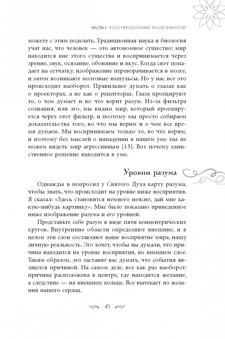 Сперва улучшаться ваши отношения с другими людьми, наполнившись искренностью и любовью. Затем вы начнете иначе воспринимать проблемы со здоровьем и другие испытания, которые посылает вам жизнь, увидев их скрытый смысл и научившись извлекать из них ценные уроки. И в конце концов убедитесь в своей тесной связи со всей вселенной и поймете механизм, по которому в этом мире происходят чудеса.