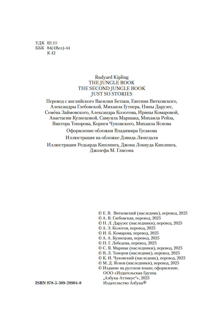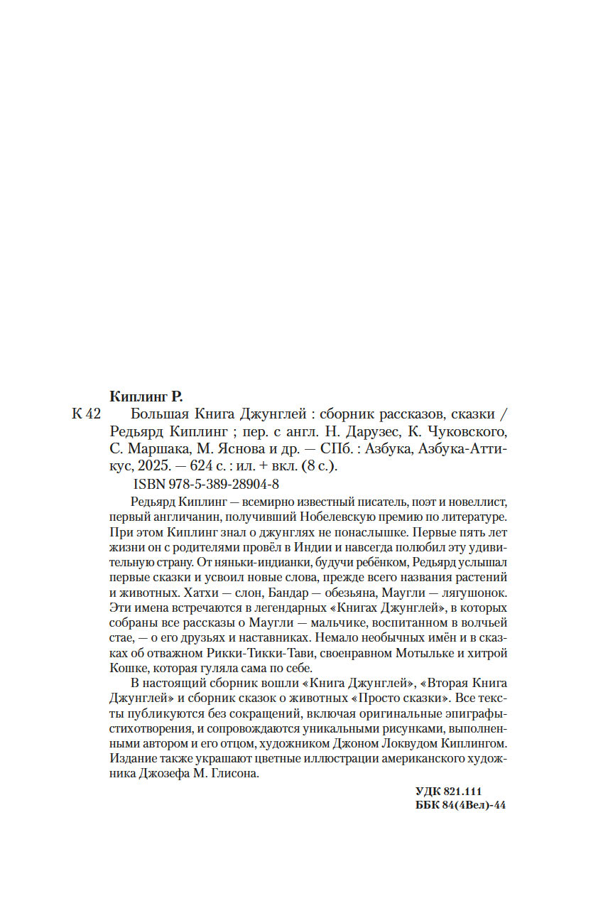 В настоящий сборник вошли "Книга Джунглей", "Вторая Книга Джунглей" и сборник сказок о животных "Просто сказки". Все тексты публикуются без сокращений, включая оригинальные эпиграфы-стихотворения, и сопровождаются уникальными рисунками, выполненными автором и его отцом, художником Джоном Локвудом Киплингом. Издание также украшают цветные иллюстрации американского художника Джозефа М. Глисона.