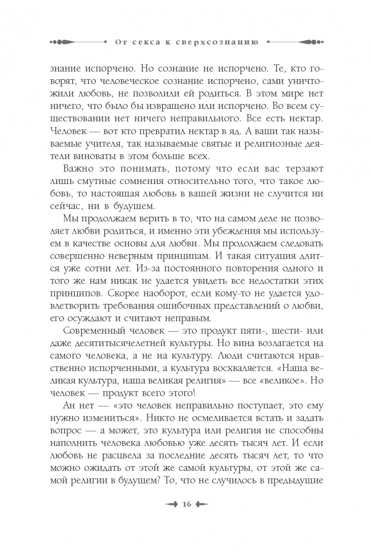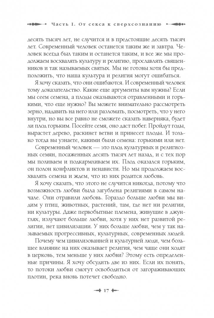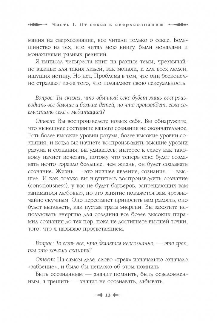 Многие из нас чувствуют себя скованно и неловко, когда речь идет о сексе. В этой книге Ошо приглашает нас побеседовать – открыто и без стеснения – об этом "запретном плоде". Со свойственной ему прямотой, но в то же время деликатно, он отвечает на разные вопросы, которыми мы часто озадачивались, но не решались произнести вслух...