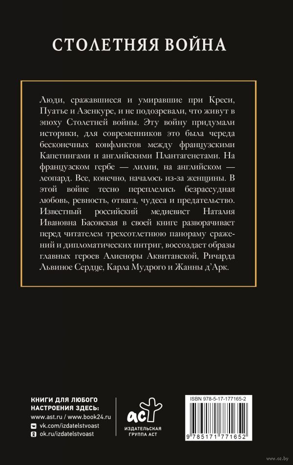 Люди, сражавшиеся и умиравшие при Креси, Пуатье и Азенкуре, и не подозревали, что живут в эпоху Столетней войны. Эту войну придумали историки, для современников это была череда бесконечных конфликтов между французскими Капетингами и английскими Плантагенетами. На французском гербе – лилии, на Английском – леопард. Все, конечно, началось из-за женщины. В этой войне тесно переплелись безрассудная любовь, ревность, отвага, чудеса и предательство. Известный российский медиевист Наталия Ивановна Басовская в своей книге разворачивает перед читателем трехсотлетнюю панораму сражений и дипломатических интриг, воссоздает образы главных героев Алиеноры Аквитанской, Ричарда Львиное Сердце, Карла Мудрого и Жанны д’Арк.