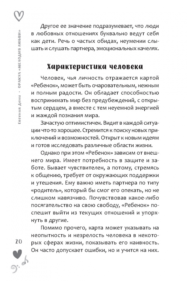 Оракул "Мелодия любви" создан для исследования любовных отношений. Во время работы с ним вы сформируете гармоничные отношения с партнером и поймете ваши истинные желания и потребности Оракул предназначен как для пар, которые хотят углубить свою эмоциональную связь, так и для тех людей, которые ищут романтические отношения или переживают расставание.