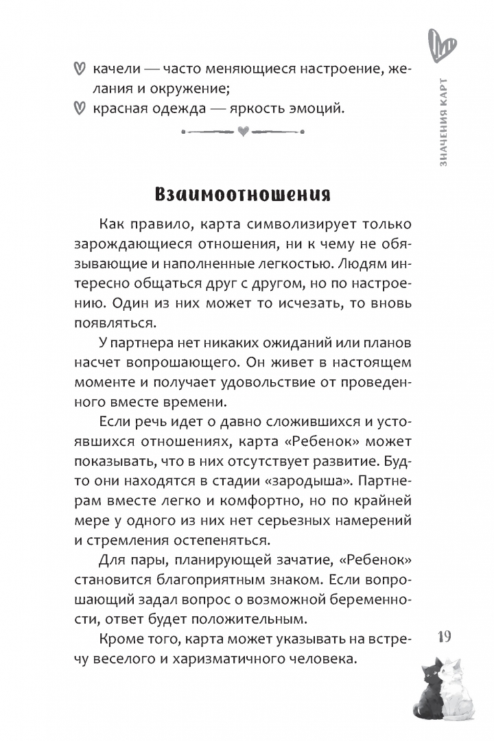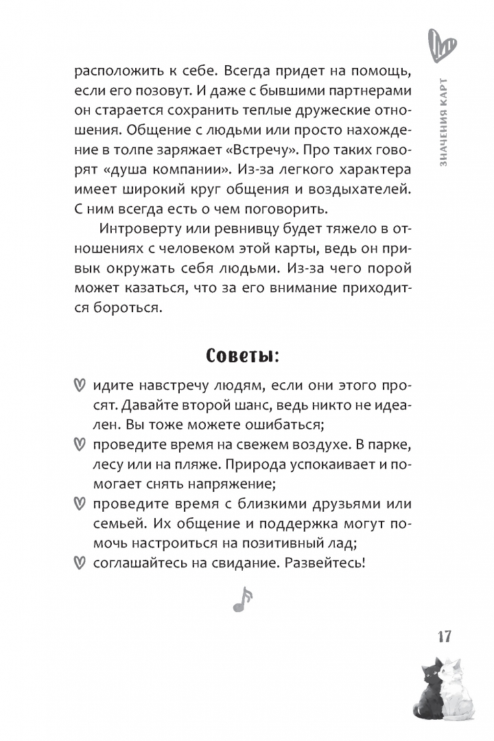 Колода состоит из метких образов, каждый из которых станет ключом к пониманию ваших чувств и эмоций. Яркие и при этом понятные символы, брошюра с интерпретациями карт и авторскими раскладами делают колоду подходящим инструментом и для искушенных практиков, и для тех, кто только открывает мир карт.