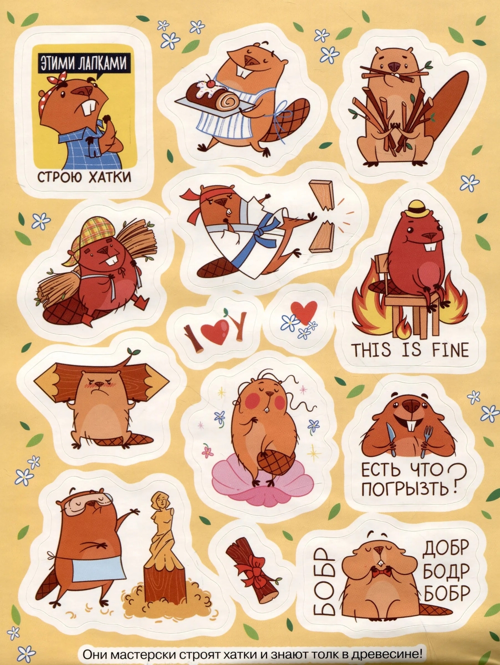 Целых 100 наклеек с модными бобрами и их смешными высказываниями!Наклейки можно клеить на любые поверхности. Их яркие цвета долго не выгорают, а произведены они из качественной, износостойкой бумаги.