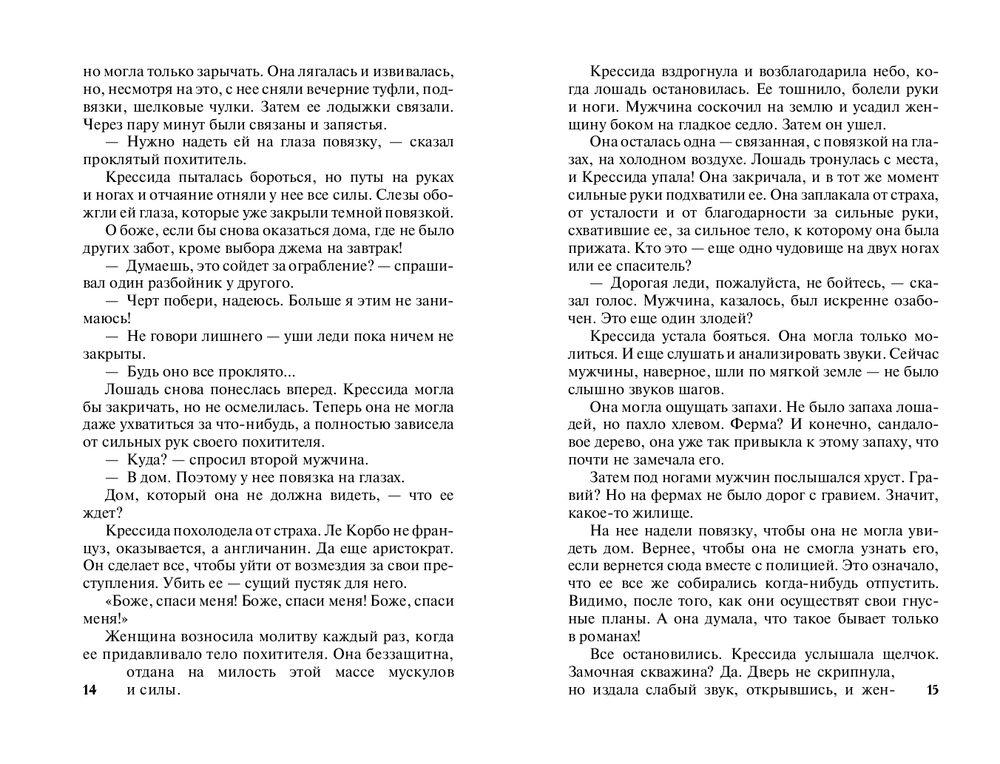 Непорядочный лорд, пользуясь ситуацией, обманывает и заставляет благопристойную леди Крессиду Мэндевилл согласиться на гнусное предложение. Девушка надеется, что хитростью ей удастся избежать самого худшего, добыть потерянные драгоценности и не позволить своей семье разориться… Но внезапное нападение разбойника, буквально вырвавшего девушку из лап омерзительного человека, срывает все ее планы…