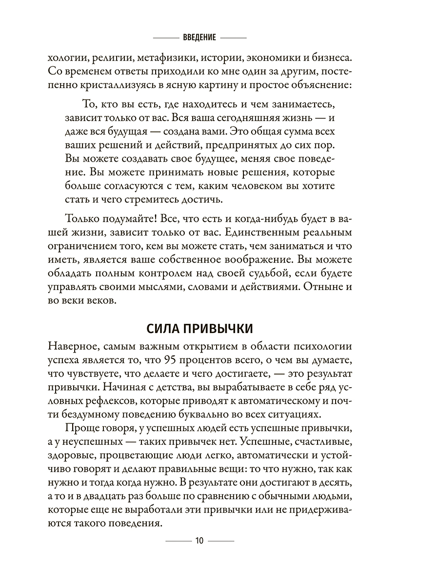 Наши мысли, наши чувства и наши поступки на 95 процентов предопределяются нашими привычками. Привычки имеют глубокие корни, но мы способны их изменить: отжившие свое и ставшие вредными привычки можно заменить новыми, полезными – и это сразу же принесет свои плоды.