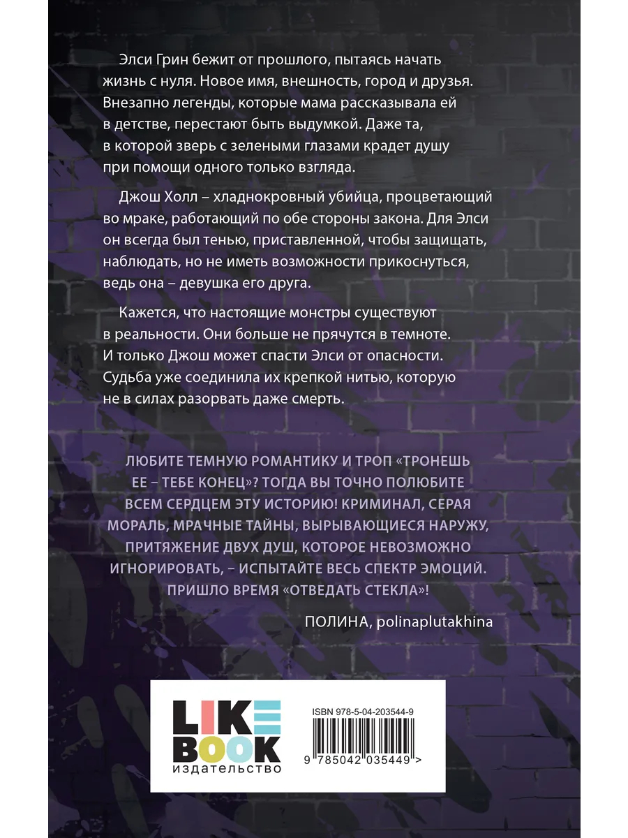 Элси Грин бежит от прошлого, пытаясь начать жизнь с нуля. Новое имя, внешность, город и друзья. Внезапно легенды, которые мама рассказывала ей в детстве, перестают быть выдумкой. Даже та, в которой зверь с зелеными глазами крадет душу при помощи одного только взгляда. Джош Холл – хладнокровный убийца, процветающий во мраке, работающий по обе стороны закона. Для нее он всегда был тенью, приставленной, чтобы защищать, наблюдать, но не иметь возможности прикоснуться, ведь она – девушка его друга. Кажется, что настоящие монстры существуют в реальности. Они больше не прячутся в темноте. И только Джош может спасти Элси от опасности. Судьба уже соединила их крепкой нитью, которую не в силах разорвать даже смерть.
