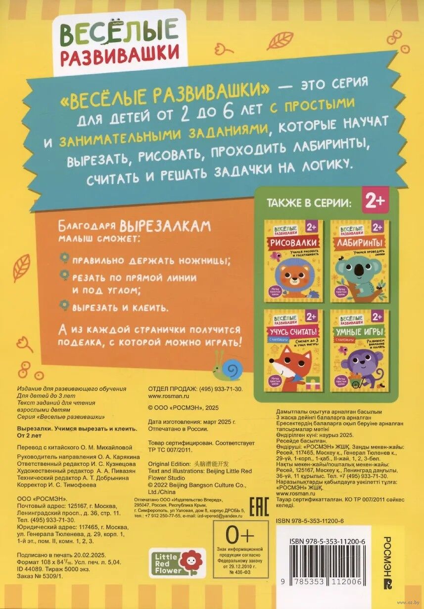 "ВЕСЁЛЫЕ РАЗВИВАШКИ" – это серия для детей от 2-х до 6-ти лет с простыми и занимательными заданиями, которые помогут освоить вырезание, рисование, прохождение лабиринтов, простой счет и задачки на логику. Лабиринты для пяти лет помогут подготовить руку к письму и научат решать логические задачки и увлекательные головоломки.