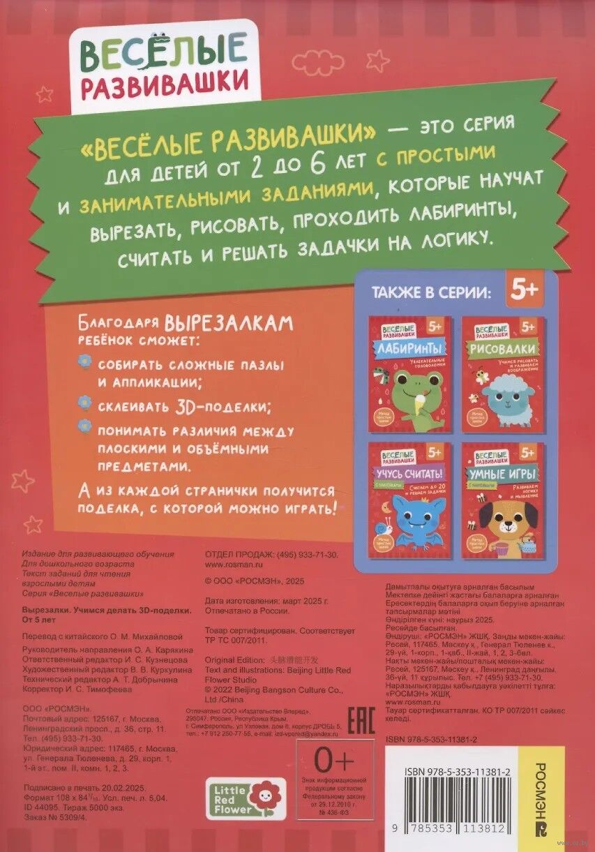 "ВЕСЁЛЫЕ РАЗВИВАШКИ" – это серия для детей от 2-х до 6-ти лет с простыми и занимательными заданиями, которые помогут освоить вырезание, рисование, прохождение лабиринтов, простой счет и задачки на логику. Лабиринты для пяти лет помогут подготовить руку к письму и научат решать логические задачки и увлекательные головоломки.