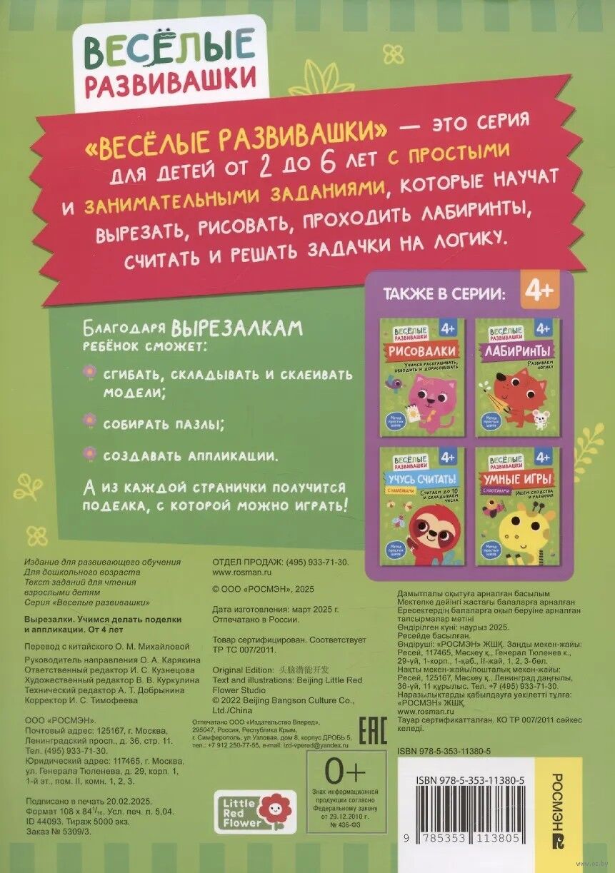 "ВЕСЁЛЫЕ РАЗВИВАШКИ" – это серия для детей от 2-х до 6-ти лет с простыми и занимательными заданиями, которые помогут освоить вырезание, рисование, прохождение лабиринтов, простой счет и задачки на логику. Лабиринты для пяти лет помогут подготовить руку к письму и научат решать логические задачки и увлекательные головоломки.