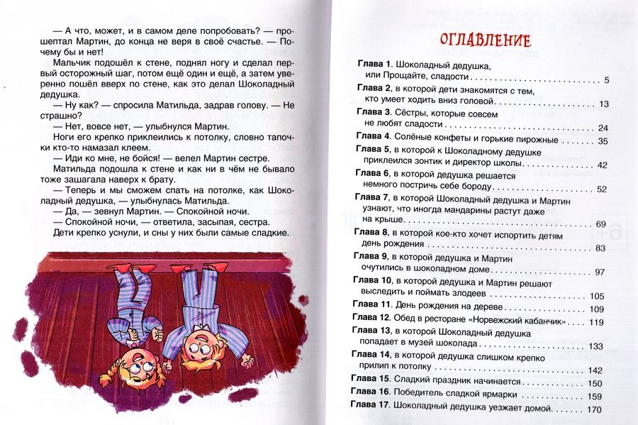 Во-первых, он ужасный сластёна: питается только конфетами, шоколадом, тортами и вареньем. А во-вторых, он умеет ходить по стенам и даже по потолку! Одновременно с Шоколадным дедушкой в городе объявились три крайне вредные старушки, которые терпеть не могут сладкого и собираются испортить главный городской праздник – ярмарку сладостей.