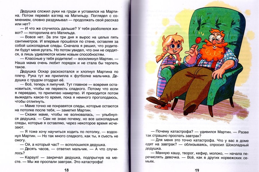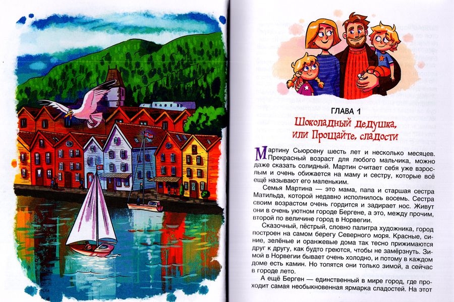 В ОДНОМ ГОРОДЕ НА БЕРЕГУ СЕВЕРНОГО МОРЯ ЖИВЁТ вполне обычная семья: мама, папа, шестилетний Мартин и восьмилетняя Матильда. Но однажды к ним в гости приезжает очень необычный родственник, которого все зовут ШОКОЛАДНЫМ ДЕДУШКОЙ.