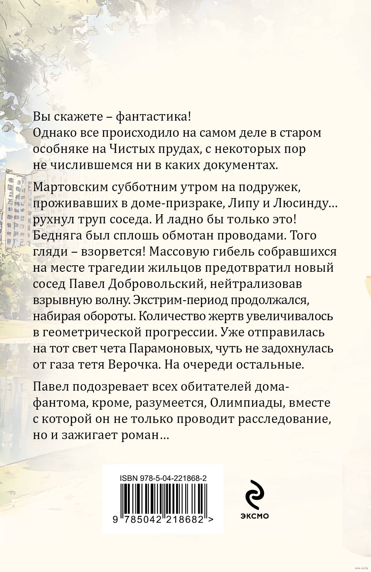 Вы скажете – фантастика! Однако все происходило на самом деле в старом особняке на Чистых Прудах, с некоторых пор не числившемся ни в каких документах. Мартовским субботним утром на подружек, проживавших в доме-призраке, Липу и Люсинду... рухнул труп соседа. И ладно бы только это! Бедняга был сплошь обмотан проводами. Того гляди – взорвется! Массовую гибель собравшихся на месте трагедии жильцов предотвратил новый сосед Павел Добровольский, нейтрализовав взрывную волну. Экстрим-период продолжался, набирая обороты. Количество жертв увеличивалось в геометрической прогрессии. Уже отправилась на тот свет чета Парамоновых, чуть не задохнулась от газа тетя Верочка. На очереди остальные. Павел подозревает всех обитателей дома-фантома, кроме, разумеется, Олимпиады, вместе с которой он не только проводит расследование, но и зажигает роман...
