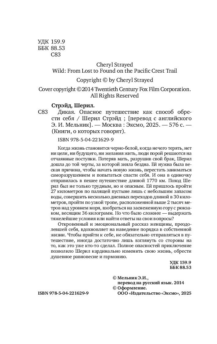 | Название в оригинале | Wild. From Lost To Found On The Pacific Crest Trail |
