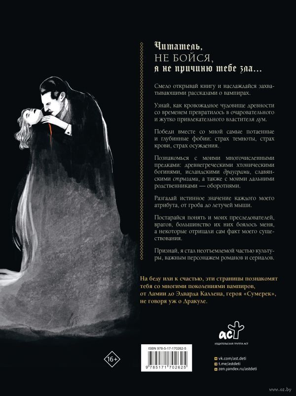 Вместе мы победим самые глубинные страхи: боязнь темноты, ужас перед кровью, страх быть отвергнутым обществом. На страницах этой книги ты познакомишься с моими многочисленными предками – от древнегреческих хтонических богинь до исландских драугров и славянских стрыг. Узнаешь о моих дальних родственниках-оборотнях и поймешь истинное значение каждого моего атрибута – от гроба до летучей мыши.