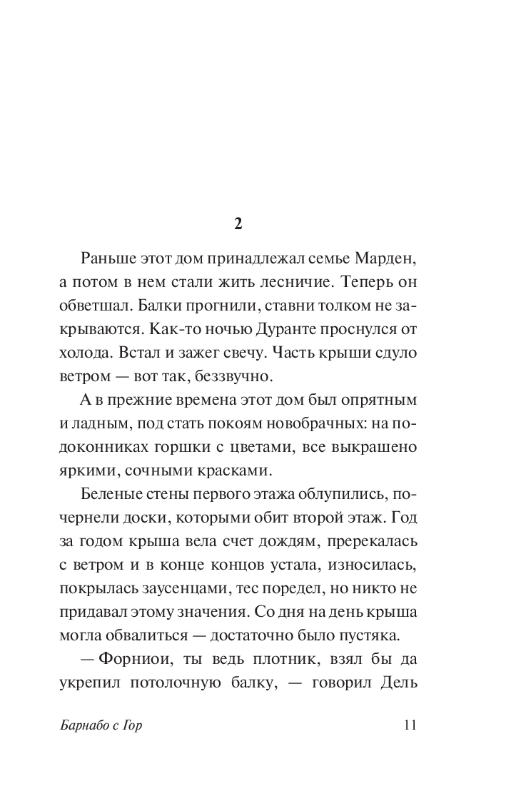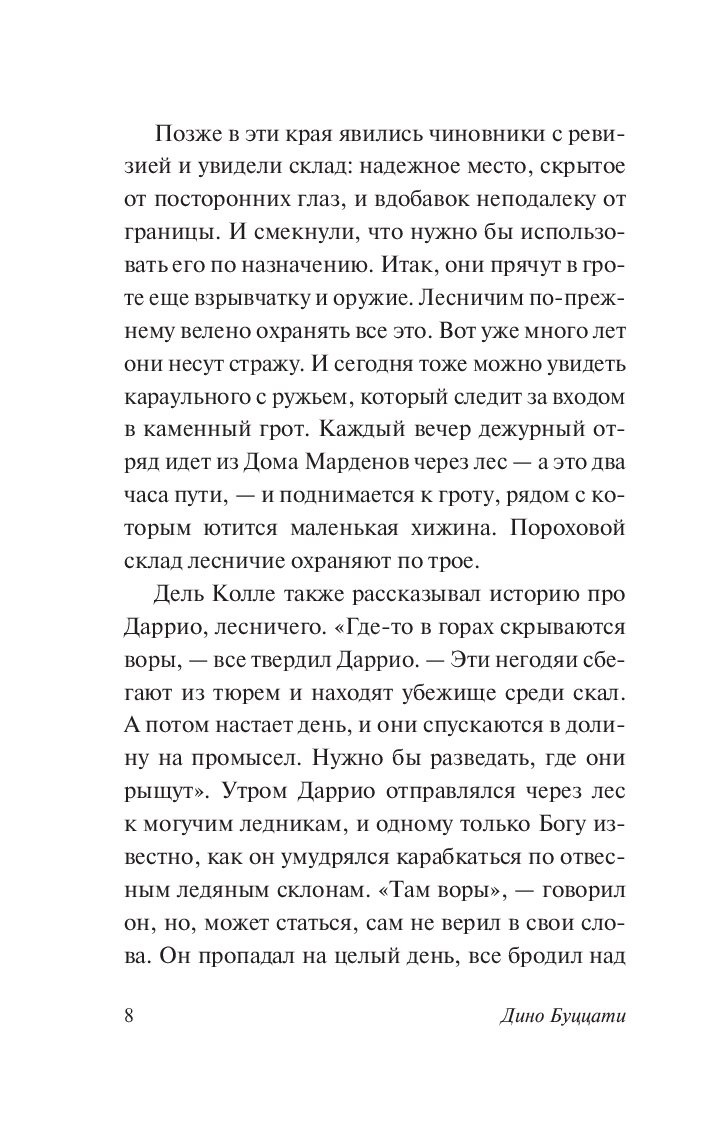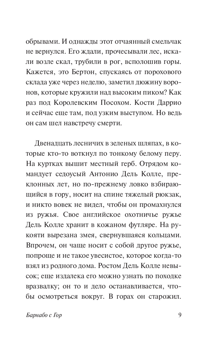 Роман "Барнабо с Гор" рассказывает об отряде лесничих, живущих в уединении альпийских лесов, им поручена охрана скрытого среди гор заброшенного склада. Однажды ночью на склад совершается налет, молодой лесничий Барнабо, охваченный страхом, покидает свой пост, за что его изгоняют из отряда. Молодому человеку приходится спуститься в долину и жить вдали от гор в томительном ожидании дня, когда он сможет исправить ошибки прошлого.