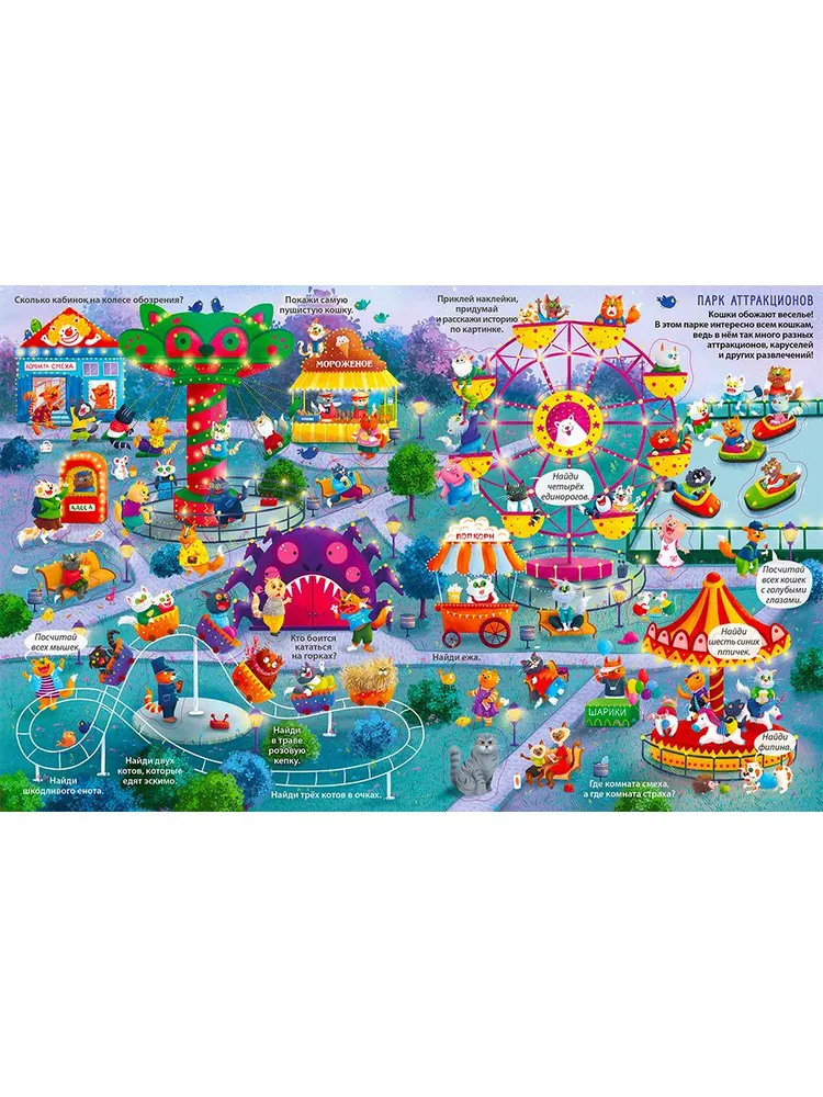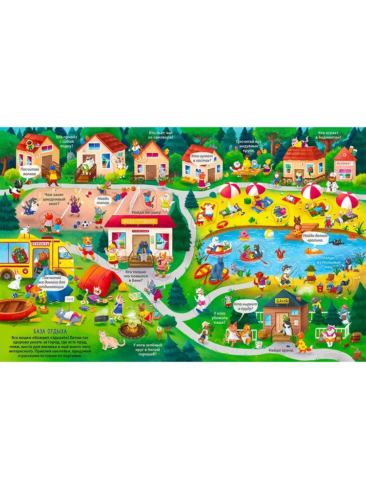 Вы держите в руках не просто книгу, а настоящий виммельбух с наклейками. Благодаря ярким иллюстрациям и занимательным заданиям эта книга надолго увлечёт вашего ребёнка и не даст ему скучать ни минуты.