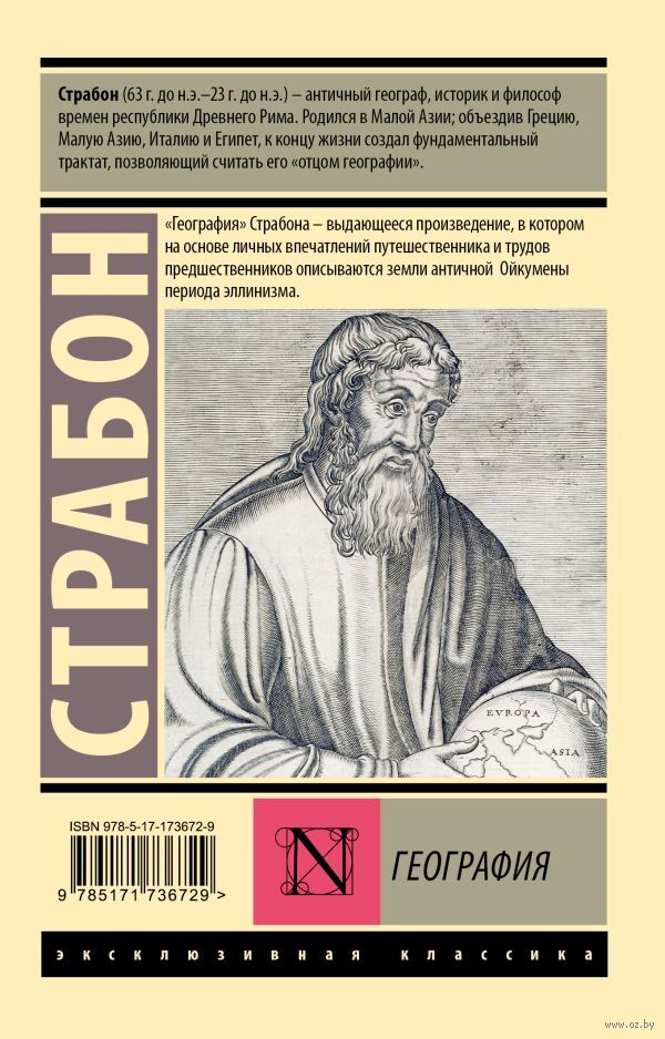 Страбон (63 г. до н.э.– 23 г. до н.э.) – античный географ, историк и философ времен республики Древнего Рима. Родился в Малой Азии; объездив Грецию, Малую Азию, Италию и Египет, к концу жизни создал фундаментальный трактат, позволяющий считать его "отцом географии".