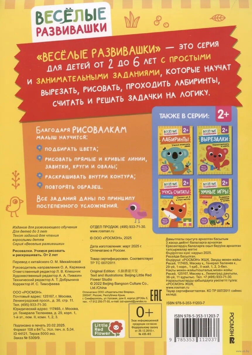 "ВЕСЁЛЫЕ РАЗВИВАШКИ" – это серия для детей от 2-х до 6-ти лет с простыми и занимательными заданиями, которые помогут освоить вырезание, рисование, прохождение лабиринтов, простой счет и задачки на логику.