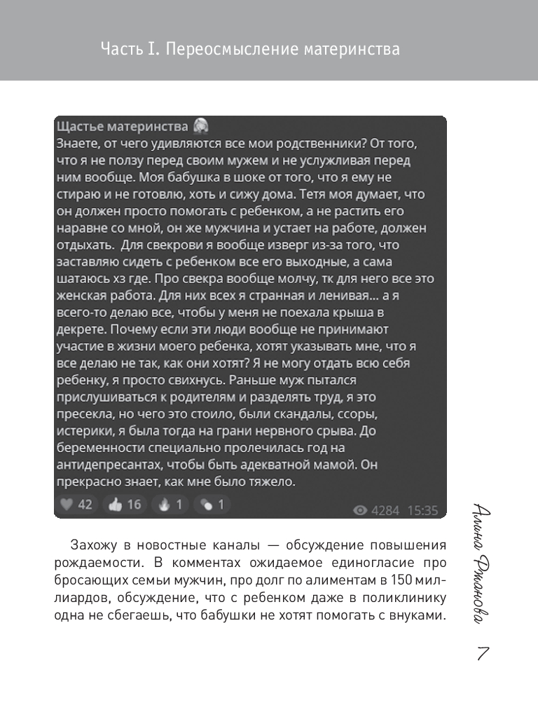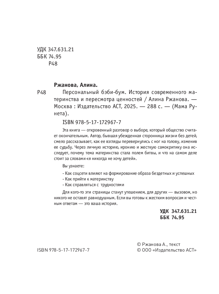 Эта книга – откровенный разговор о выборе, который общество считает окончательным. Автор, бывшая убежденная сторонница жизни без детей, смело рассказывает, как ее взгляды перевернулись с ног на голову, изменив ее судьбу. Через личную историю, иронию и жесткую самокритику она исследует, почему тема материнства стала полем битвы, и что на самом деле стоит за словами "я никогда не хочу детей".