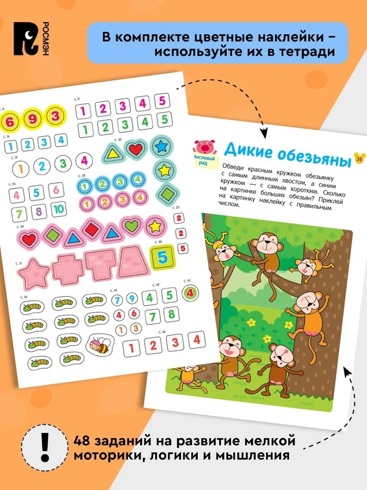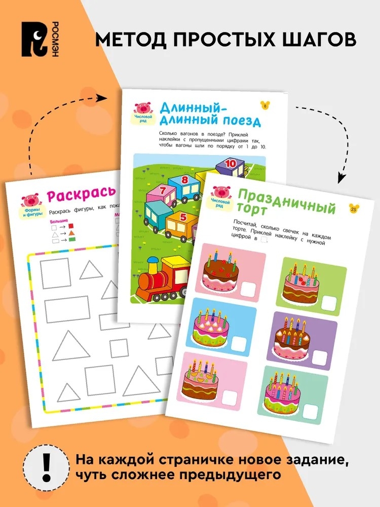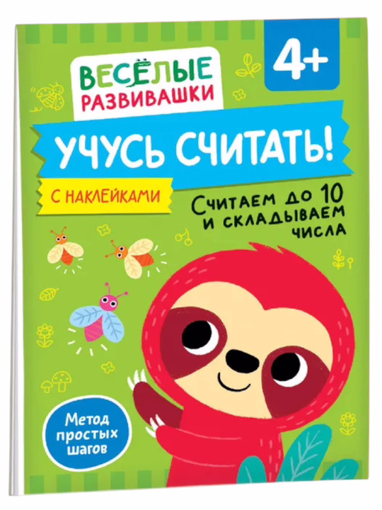 УЧУСЬ СЧИТАТЬ! для четырёх лет научат считать до 10 и по порядку, расставлять предметы от большого к маленькому, объединять предметы по группам.