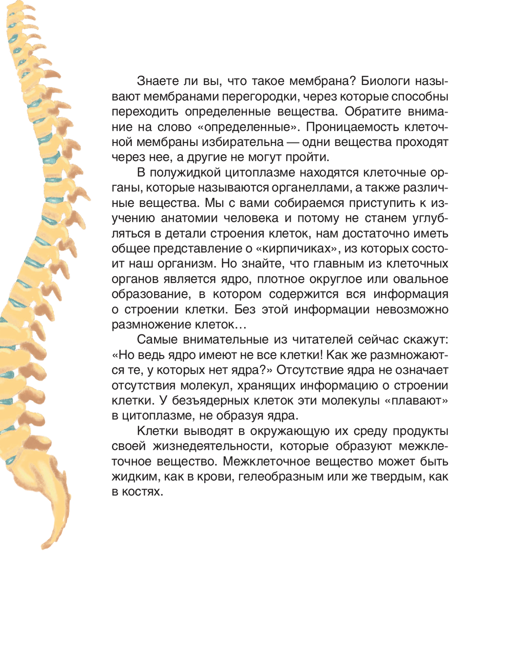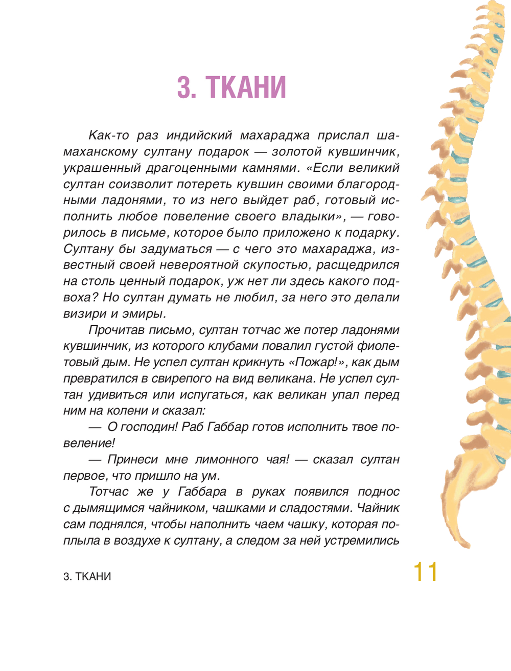 Профессор Витаминкин, заведующий кафедрой анатомии в Университете тридевятого царства, станет вашим проводником в этом удивительном путешествии. Вы узнаете, почему сердце работает как насос, как мозг управляет всем организмом, зачем нам нужны кости и мышцы и даже почему нельзя есть слишком много сладкого! Царь Горох и его придворные помогут разобраться в строении скелета, а царевна Аграфена объяснит, как работает иммунная система. После чтения вы будете смотреть на свое тело как на удивительный механизм, в котором нет ничего лишнего!