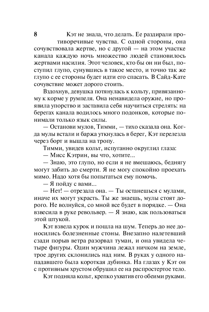 Кэтрин Карнахэн едва ли не с детства привыкла к опасной мужской работе – смело водила она по каналам баржу, при необходимости уверенно управлялась и с револьвером. А потому, увидев, что несколько пьяных негодяев жестоко избивают человека, сочла своим долгом вмешаться. Слишком поздно узнала Кэтрин, что спасенный ею Морган Кейн, такой обаятельный и милый, – один из самых лихих и дерзких игроков этих мест. Слишком поздно – потому что неотразимый авантюрист уже покорил ее сердце...