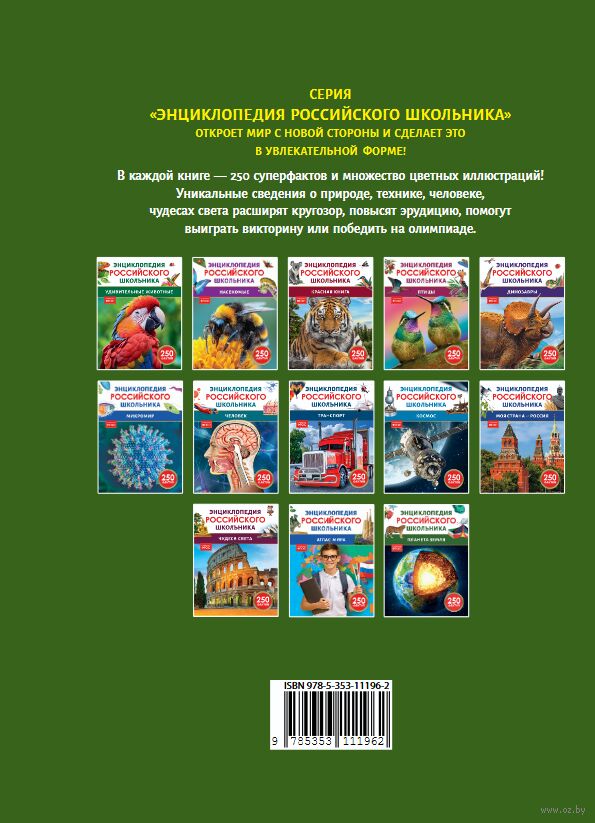 250 впечатляющих фактов о Земле – о месте планеты в космосе, о ее строении и, конечно, о жизни на Земле. Океаны и континенты, климатические зоны и погодные явления, разнообразие животного и растительного мира, экологические проблемы и поиски новых источников энергии – из множества разнообразных фактов складывается цельная картина прекрасной и такой хрупкой планеты – нашего единственного дома, который все мы должны беречь. Книга не только дает школьнику актуальную научную информацию, но и формирует у него экологическое сознание, воспитывает ответственное поведение.