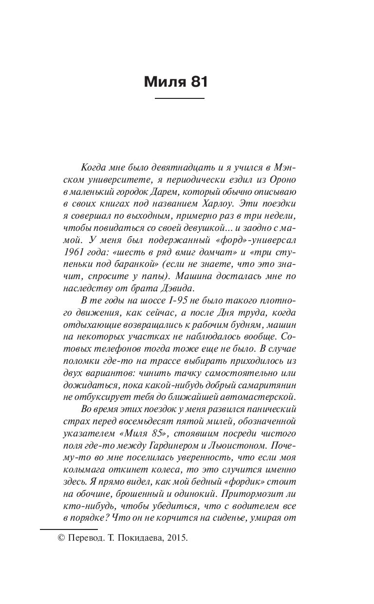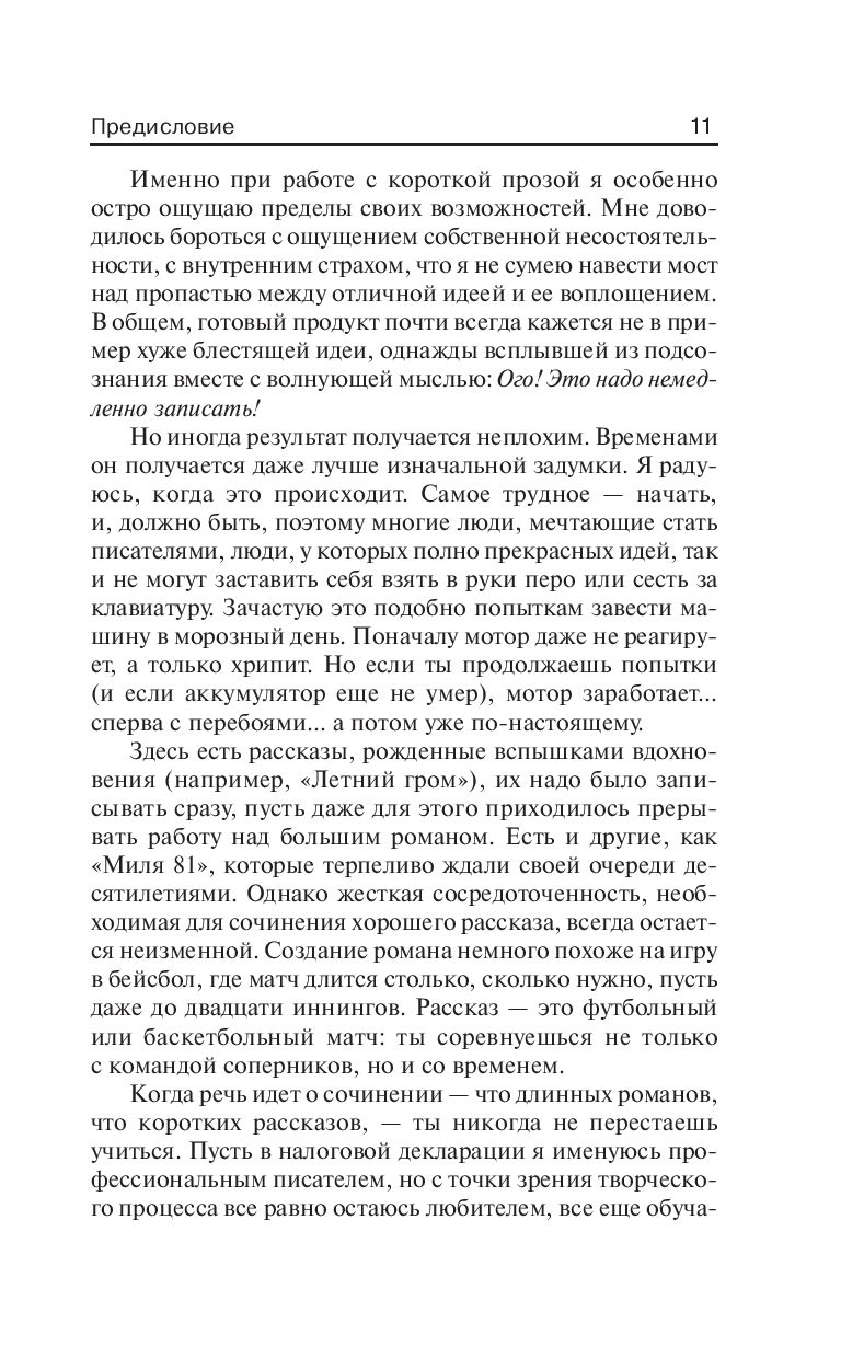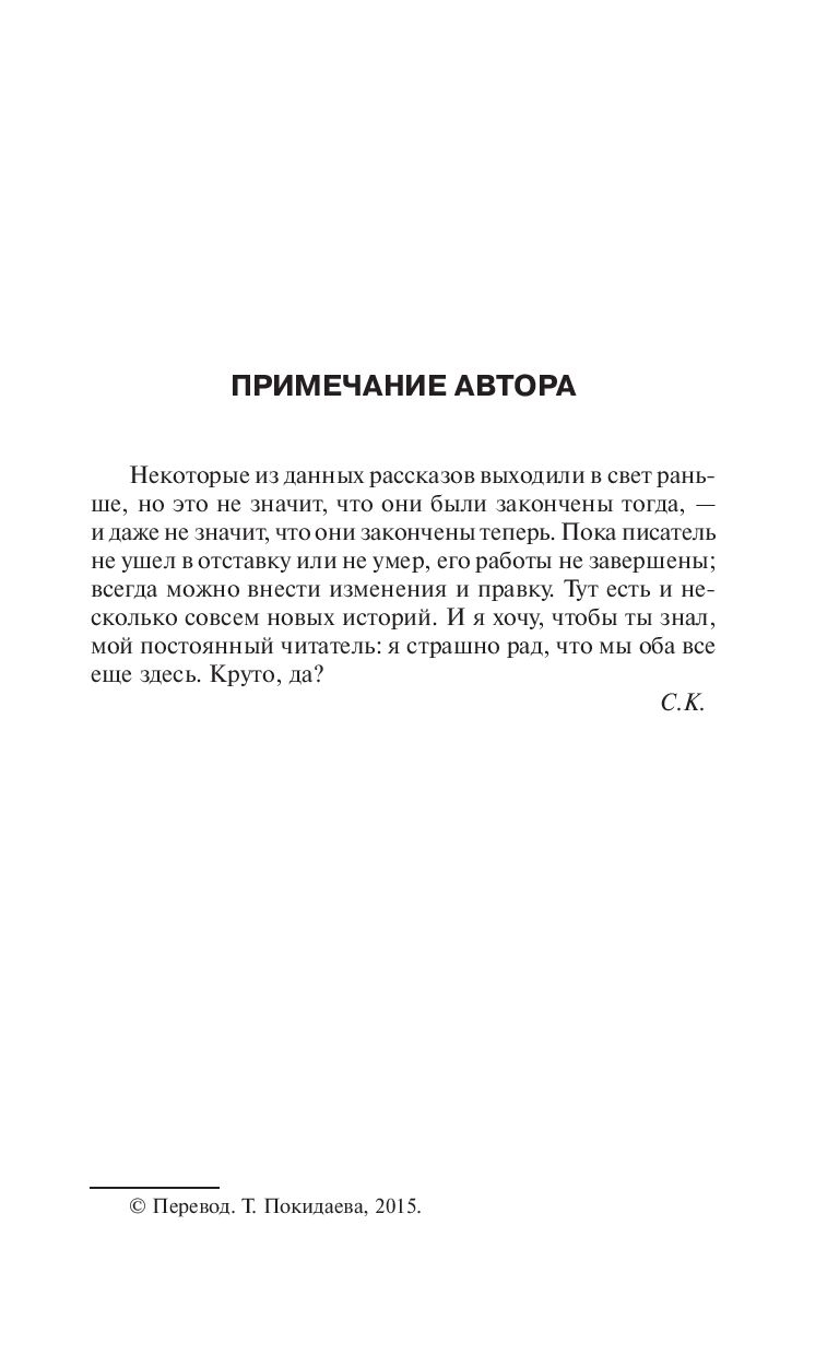 Автор многочисленных романов, Стивен Кинг всегда считался еще и блестящим мастером малой прозы, ведь именно эти произведения принесли ему престижную премию О. Генри.