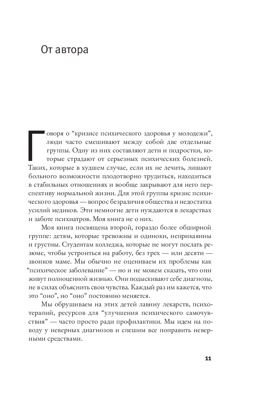 Журналистка-расследовательница Эбигейл Шрайер погружается в индустрию психотерапии для подростков, обнаруживая поразительные и подчас пугающие вещи. Собрав сотни интервью с детскими психологами, подростками, их родителями и учителями, Шрайер разбирается в том, как институционализированная психотерапия изменила наш подход к обучению и воспитанию детей, наши способы разговаривать и взаимодействовать с ними. Похоже, что нынешний кризис взросления и проблемы с юным поколением (на которые сейчас – как и во все времена – принято активно жаловаться) во многом проистекают как раз из наиболее распространенных методик терапии.