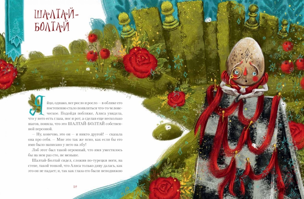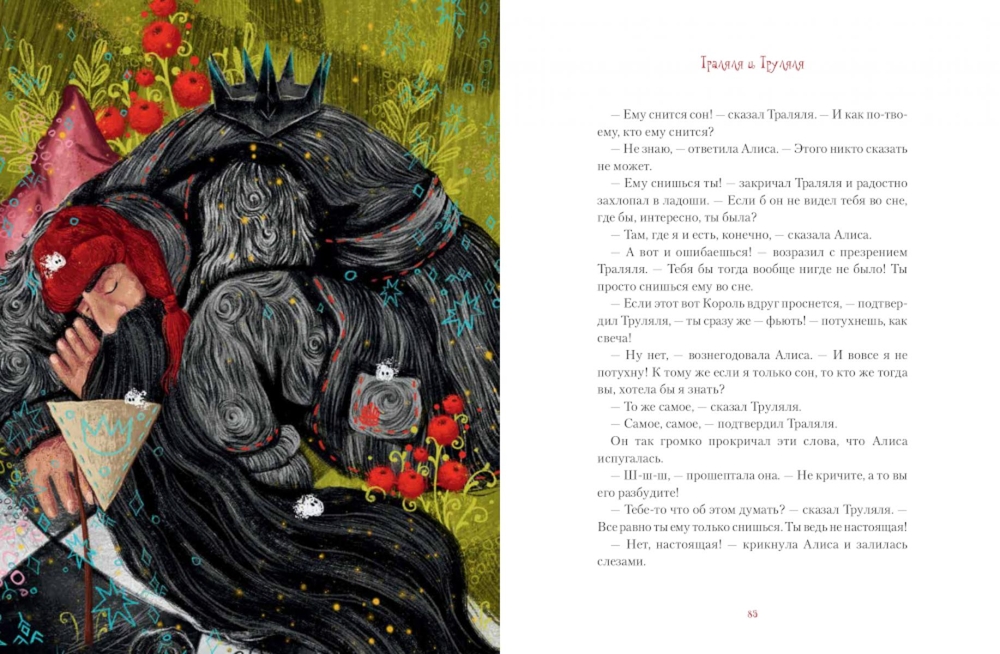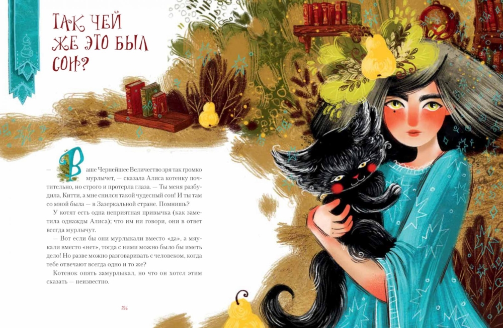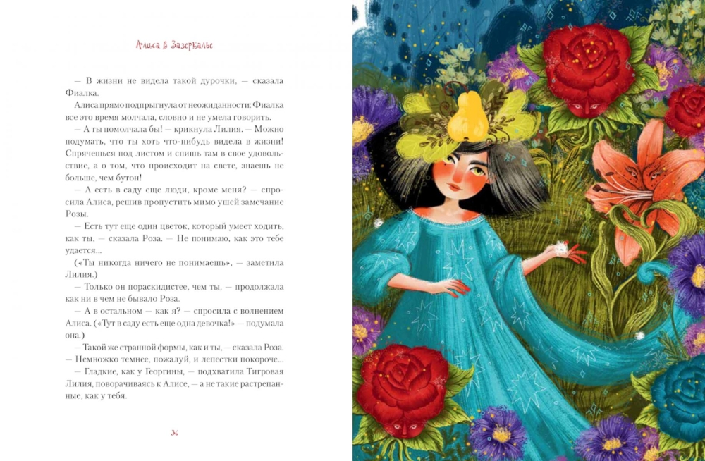 Если долго вглядываться в зеркальную гладь, когда снег тихо шуршит о стекла, рядом мурчит теплая кошка, а тебе всего лишь семь лет, то комната может на глазах измениться и начнутся настоящие чудеса! Так и произошло с уже знакомой нам любительницей приключений Алисой – главной героиней историй знаменитого математика и сказочника Льюиса Кэрролла. В Зазеркальной стране девочка познакомится с озорными братцами Траляля и Труляля, пообщается с большим любителем загадок Шалтаем-Болтаем, будет весело отчаиваться (с вареньем и булочками) в королевской компании, а затем и сама станет Королевой. А поможет ей в этом современная художница Марина Буданова, которая нарисовала для нас и другую книгу – "Алиса в Стране Чудес".