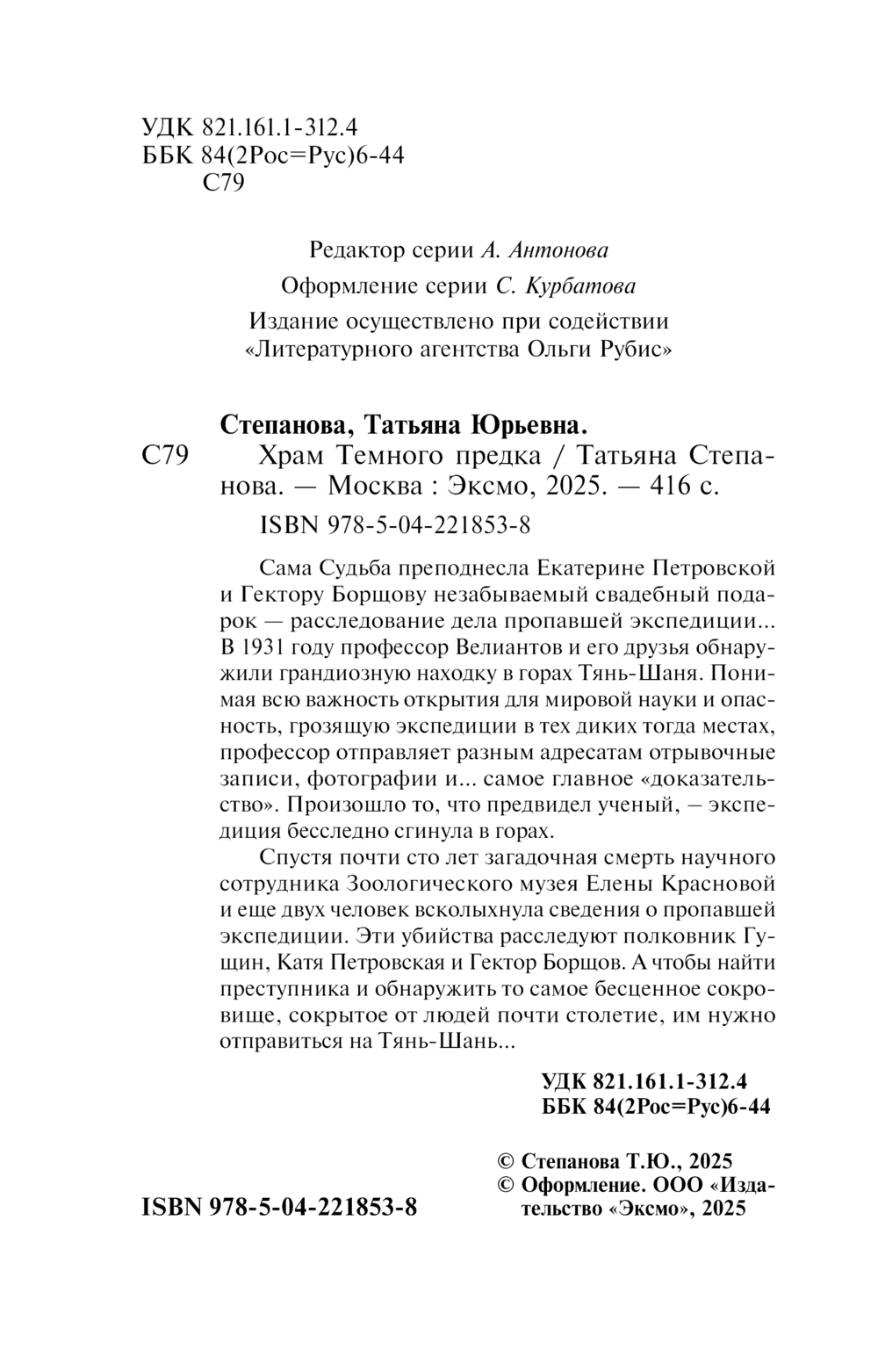 Сама Судьба преподнесла Екатерине Петровской и Гектору Борщову незабываемый свадебный подарок – расследование дела Пропавшей экспедиции… В 1931 году профессор Велиантов и его друзья обнаружили грандиозную находку в горах Тянь-Шаня. Понимая всю важность открытия для мировой науки и опасность, грозящую экспедиции в тех диких тогда местах, профессор отправляет разным адресатам отрывочные записи, фотографии и… самое главное "доказательство". Произошло то, что предвидел ученый – экспедиция бесследно сгинула в горах.