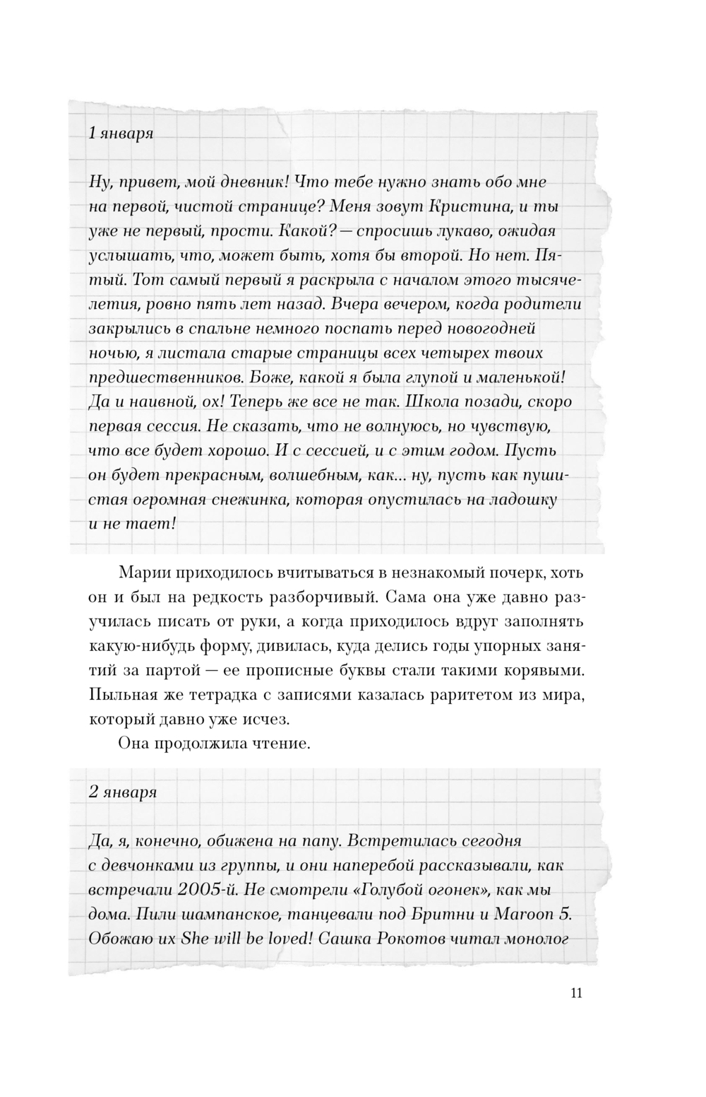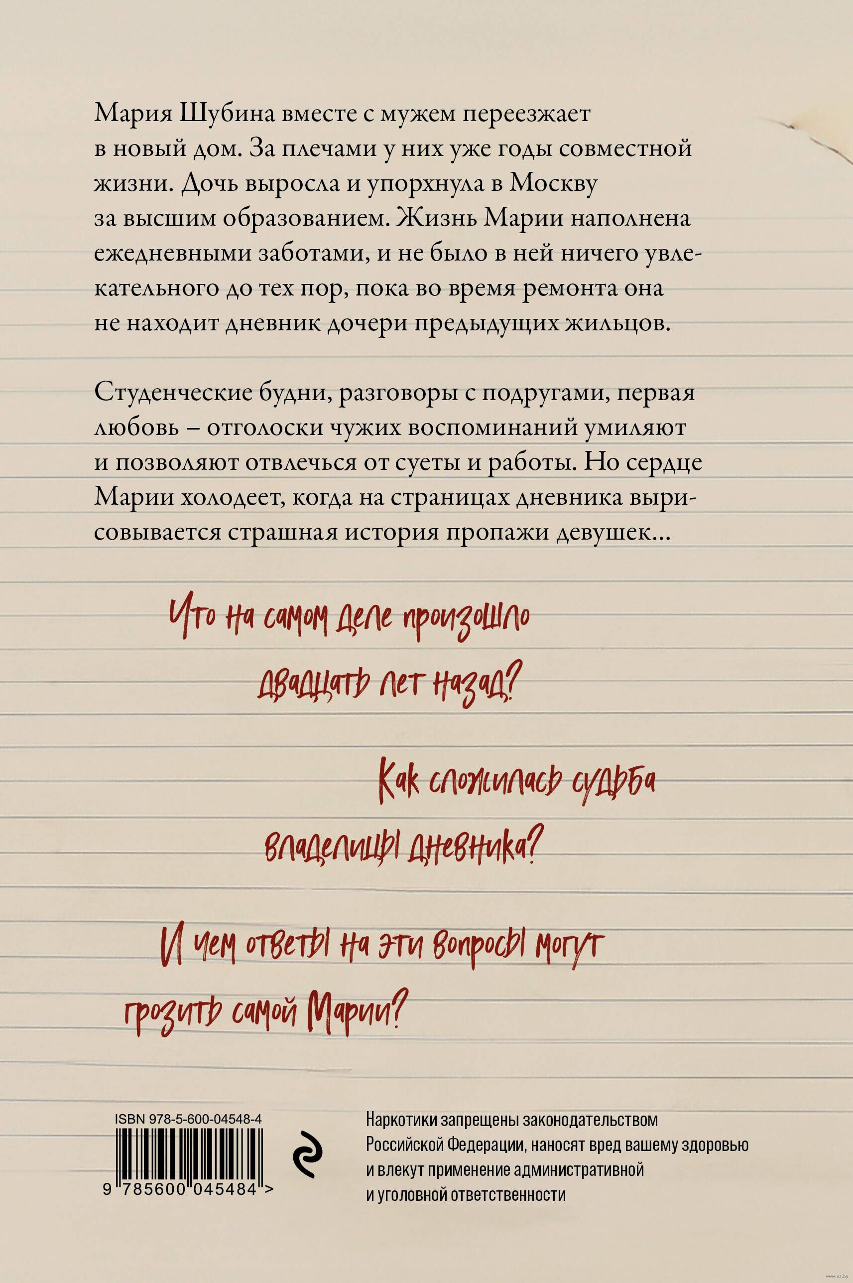 Студенческие будни, разговоры с подругами, первая любовь – отголоски чужих воспоминаний умиляют и позволяют отвлечься от суеты и работы. Но сердце Марии холодеет, когда на страницах дневника вырисовывается страшная история пропажи девушек…