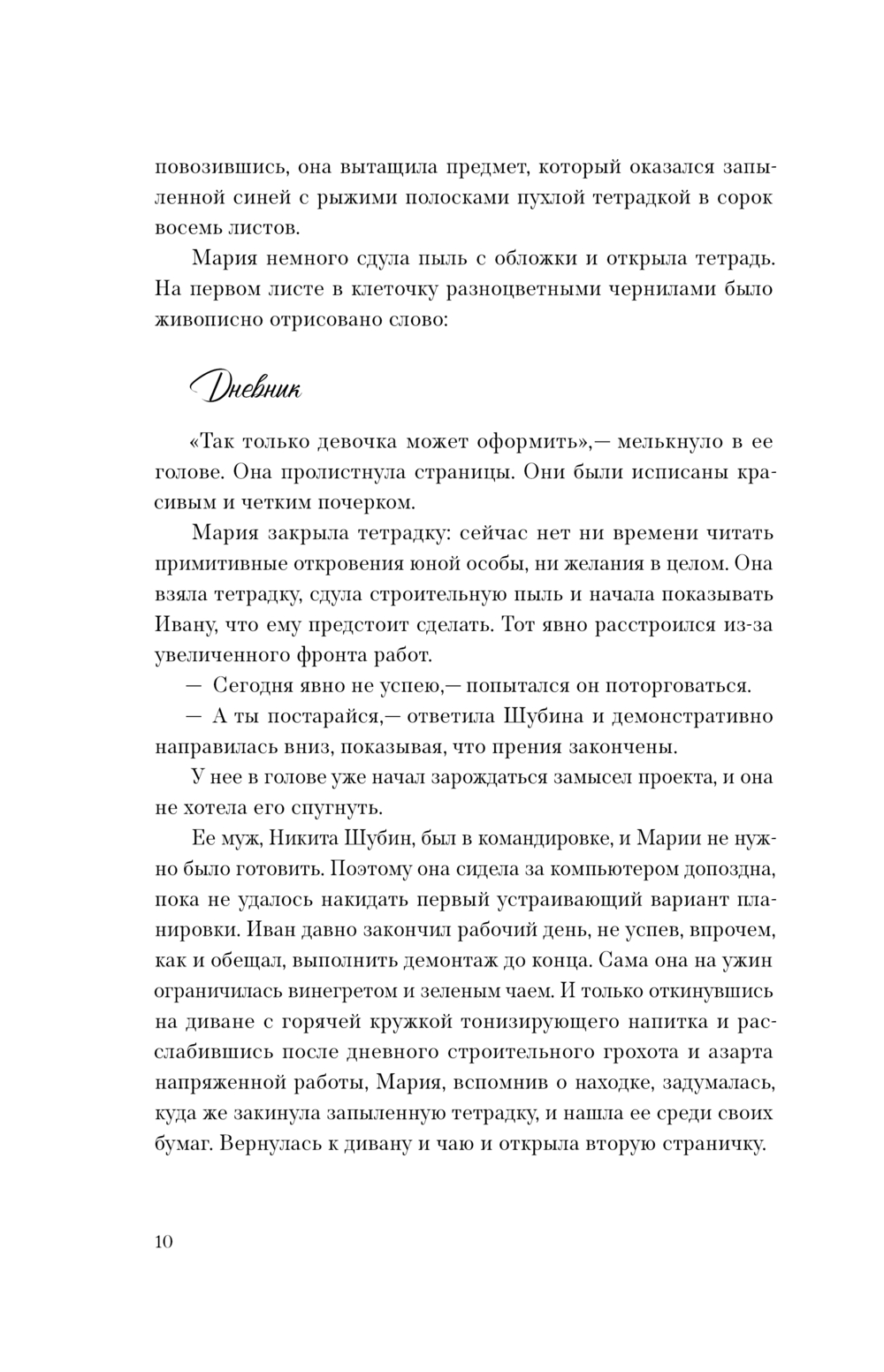 Мария Шубина вместе с мужем переезжает в новый дом. За плечами у них уже годы совместной жизни. Дочь выросла и упорхнула в Москву за высшим образованием. Каждый день Марии наполнен привычными заботами, и не было в них ничего увлекательного, до тех пор, пока во время ремонта она не нашла дневник дочери предыдущих жильцов.
