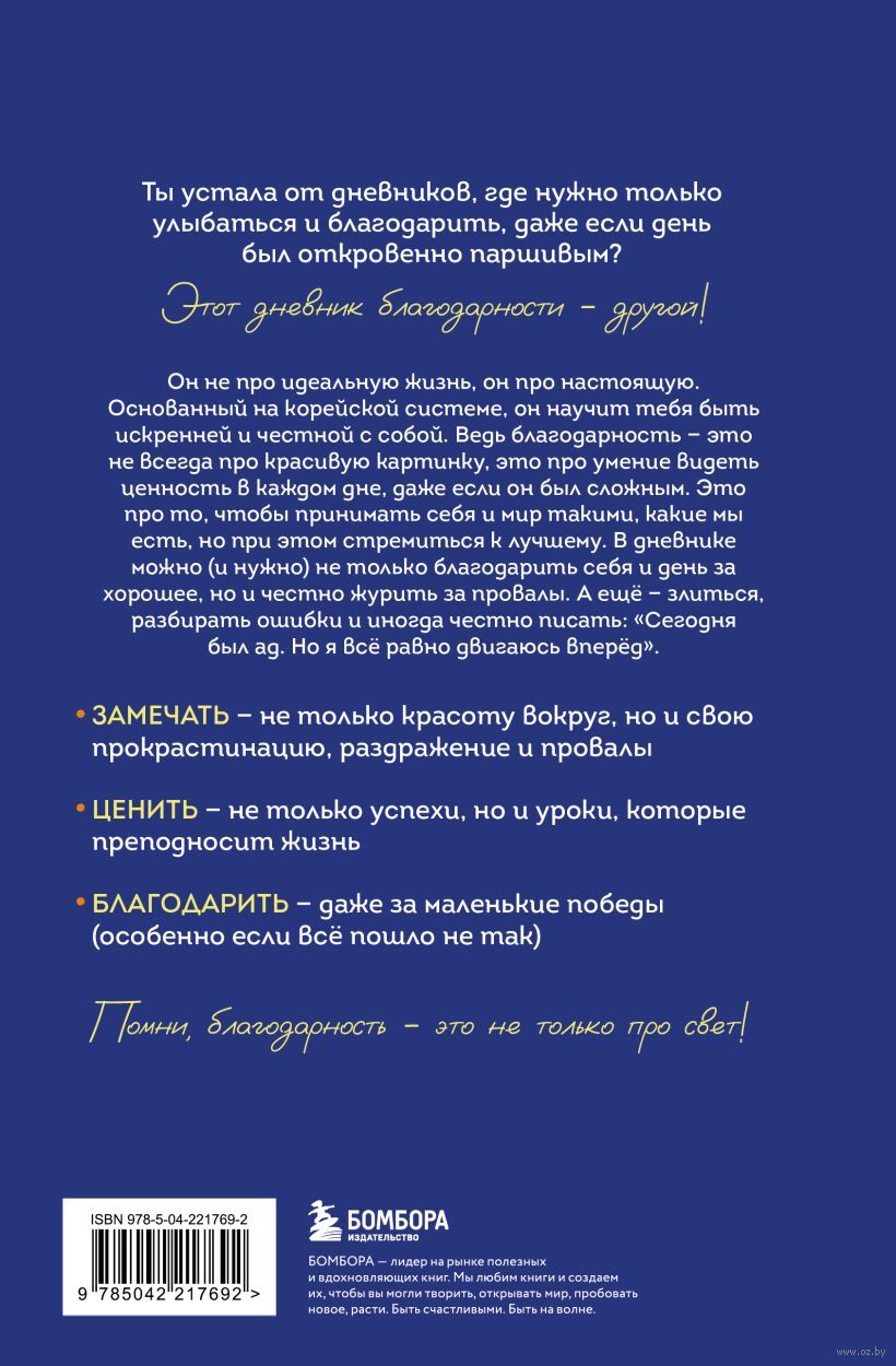 Он не про идеальную жизнь, он про настоящую. Основанный на корейской системе, он научит тебя быть искренней и честной с собой. Ведь благодарность – это не всегда про красивую картинку, это про умение видеть ценность в каждом дне, даже если он был сложным. Это про то, чтобы принимать себя и мир такими, какие мы есть, но при этом стремиться к лучшему. В дневнике можно (и нужно) не только благодарить себя и день за хорошее, но и честно журить за провалы. А ещё – злиться, разбирать ошибки и иногда честно писать: "Сегодня был ад. Но я всё равно двигаюсь вперёд".