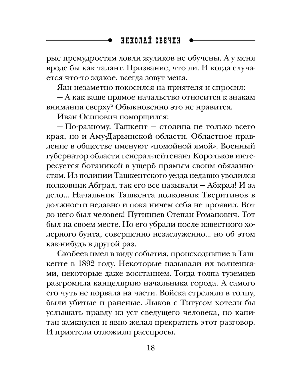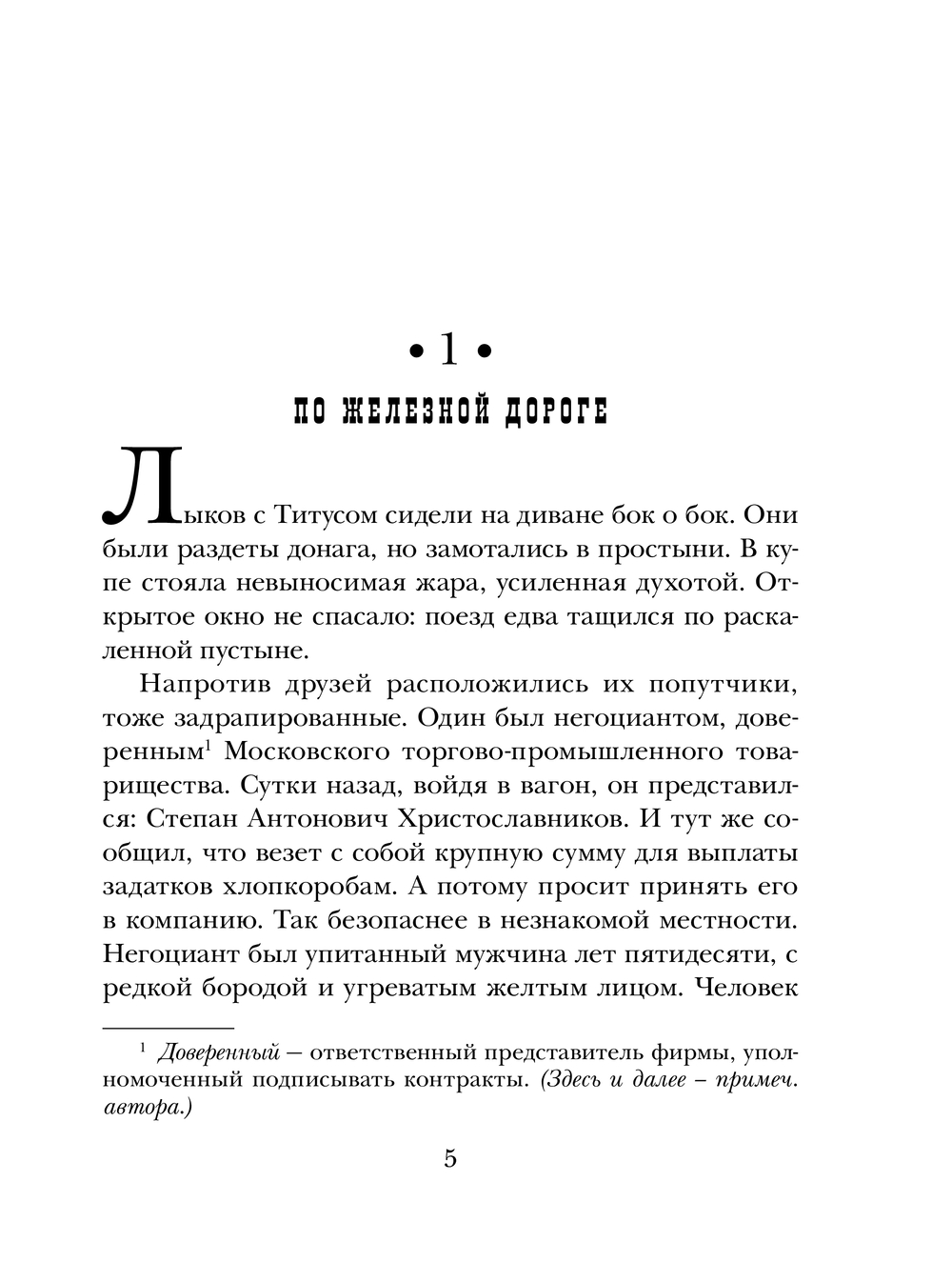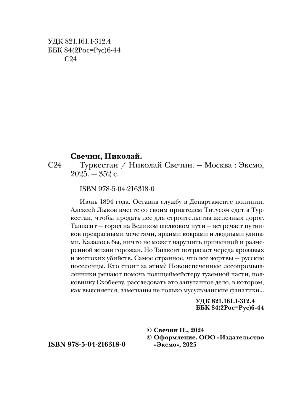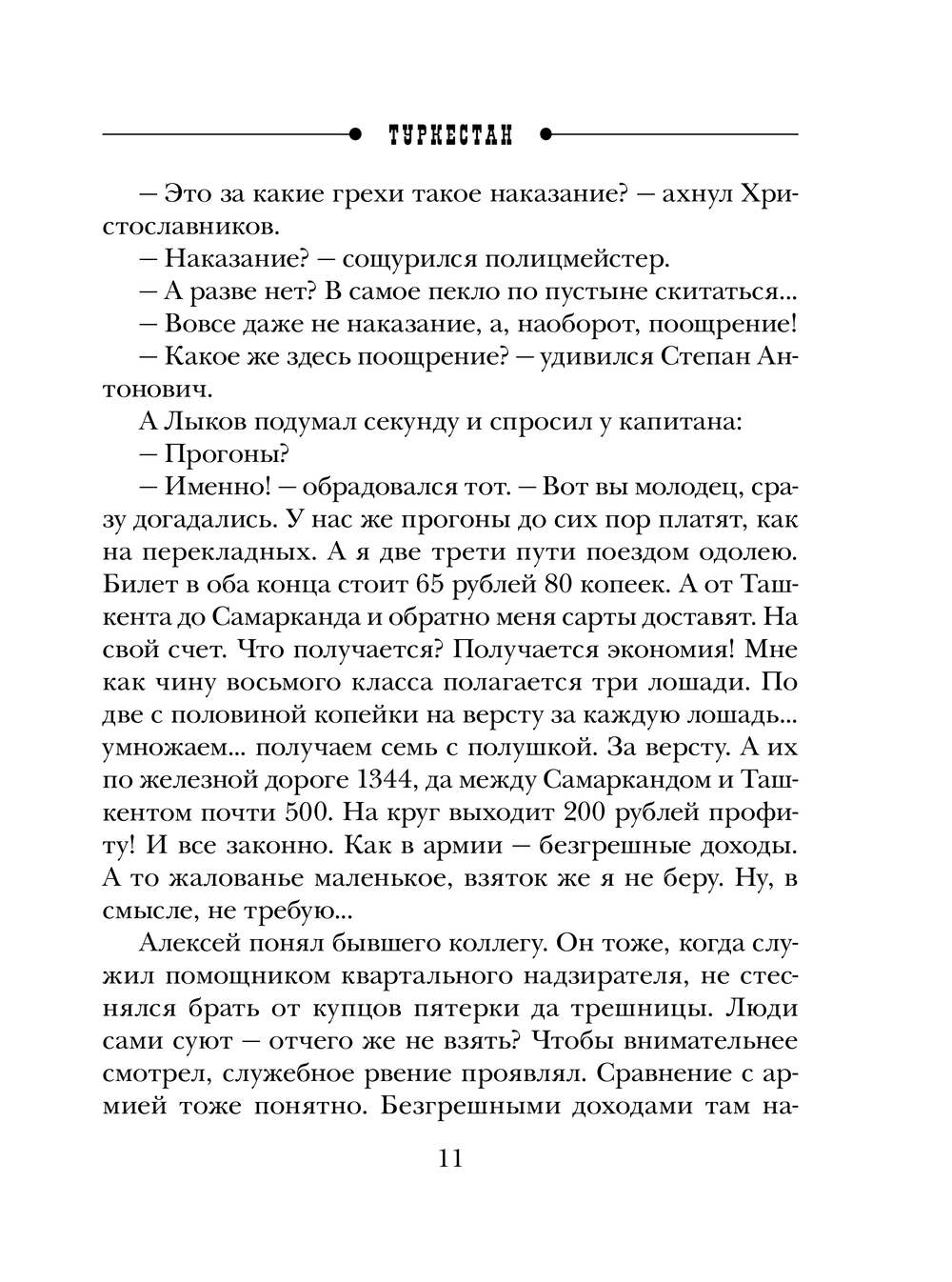 Июнь 1894 года. Оставив службу в Департаменте полиции, Алексей Лыков вместе со своим приятелем Титусом едут в Туркестан, чтобы продать лес для строительства железных дорог. Ташкент – город на Великом шелковом пути – встречает путников прекрасными мечетями, яркими коврами и людными улицами. Казалось бы, ничто не может нарушить привычной и размеренной жизни горожан. Но Ташкент потрясает череда кровавых и жестоких убийств. Самое странное, что все жертвы – русские поселенцы. Кто стоит за этим? Новоиспеченные лесопромышленники решают помочь полицеймейстеру туземной части, полковнику Скобееву, расследовать это запутанное дело, в котором, как выясняется, замешаны не только мусульманские фанатики…